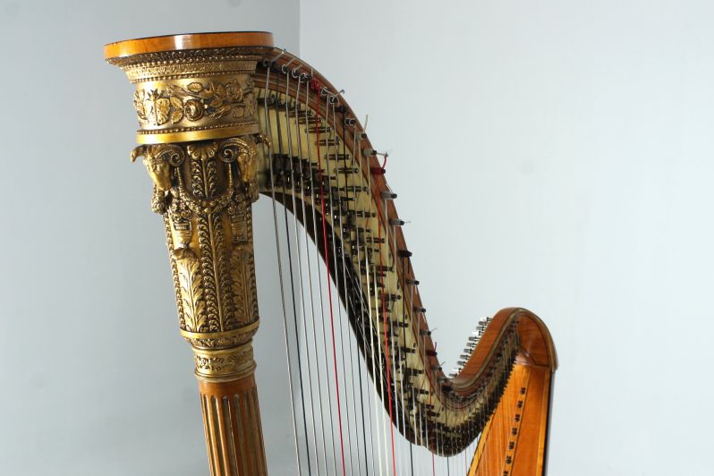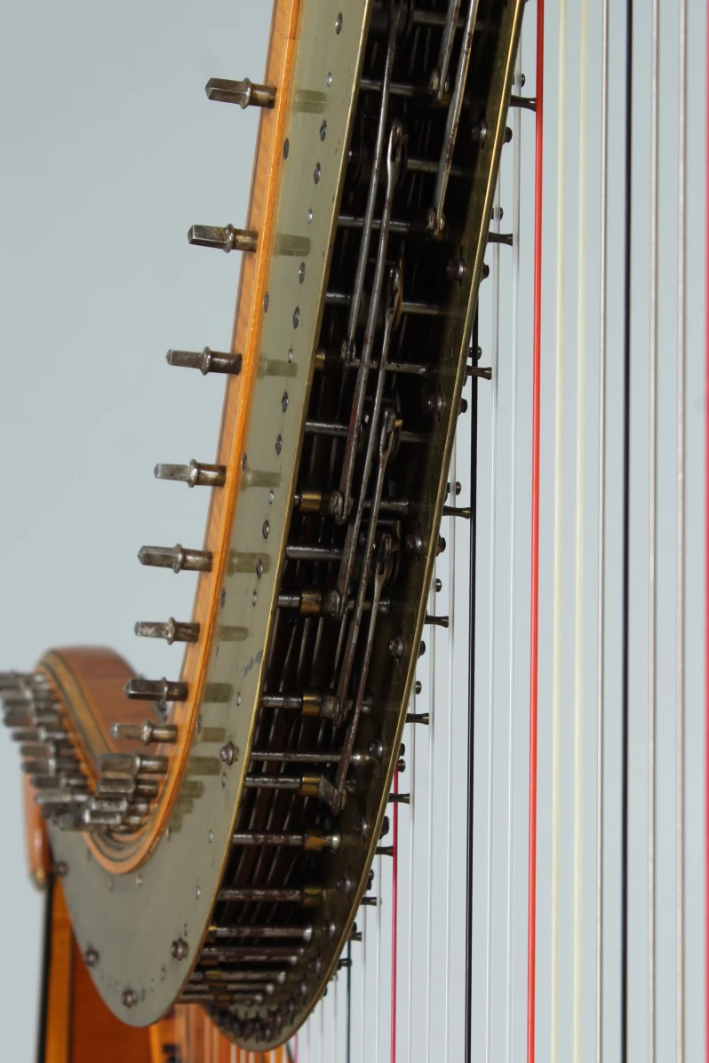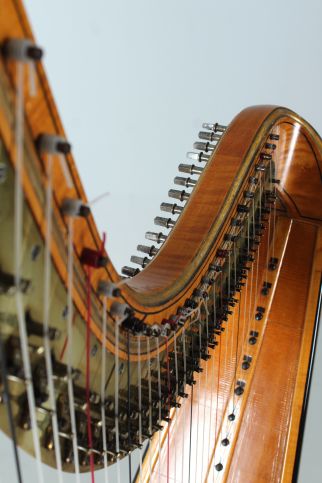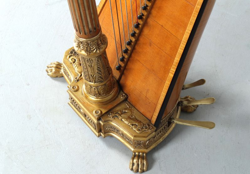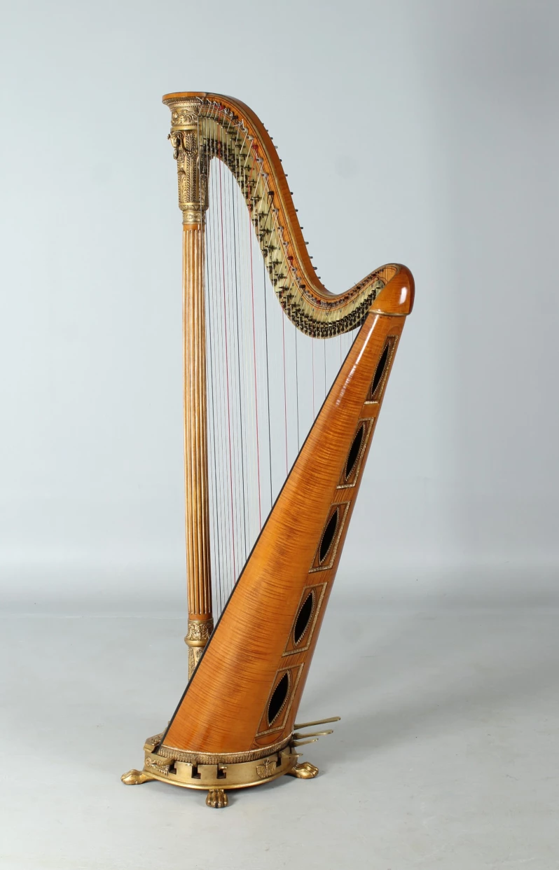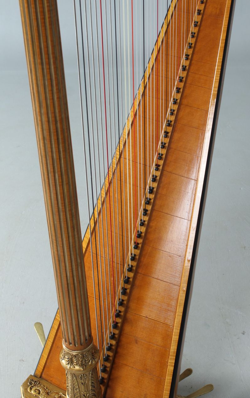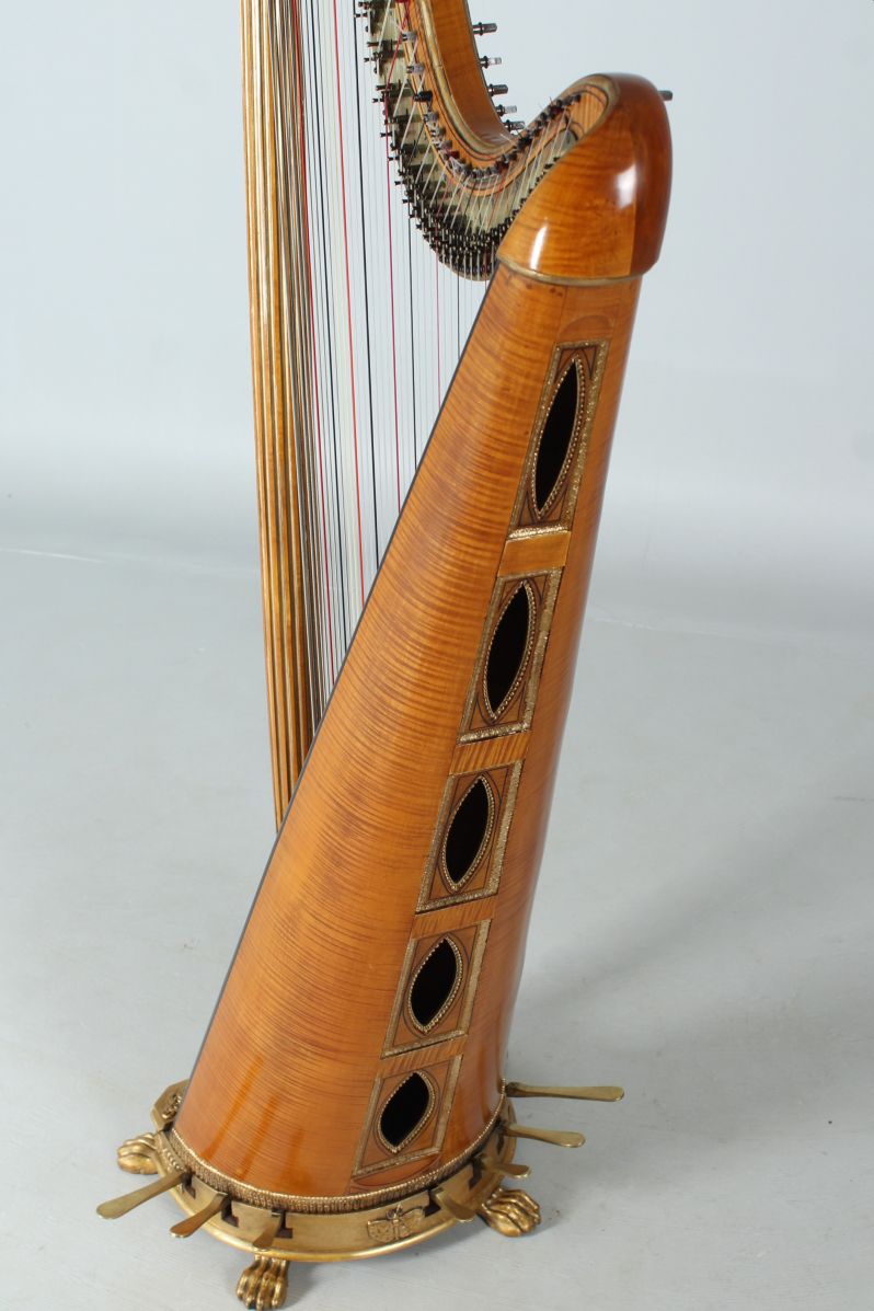 Wunderschöne und äußerst elegante Pedalharfe mit 43 Saiten aus der Werkstatt des berühmten Harfenbauers Brimmeyr in Paris.