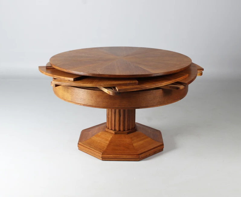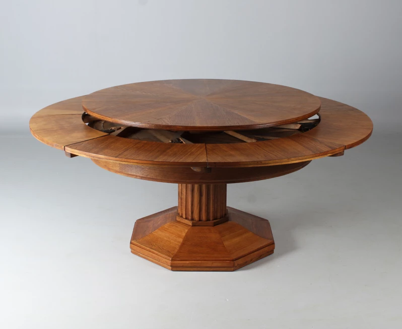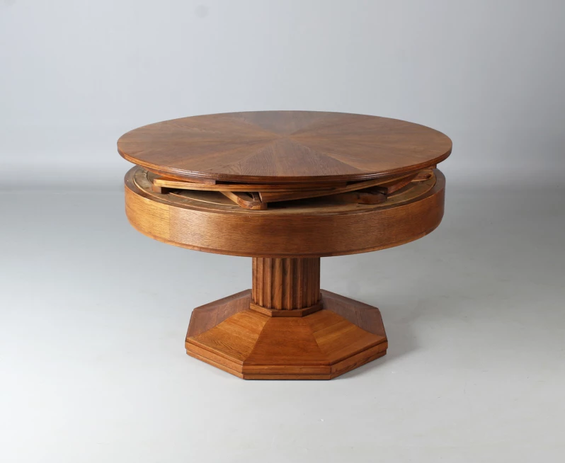 Dieser außergewöhnliche Esstisch aus den 1920er Jahren hat die seltene Fähigkeit seinen Durchmesser zu vergrößern.