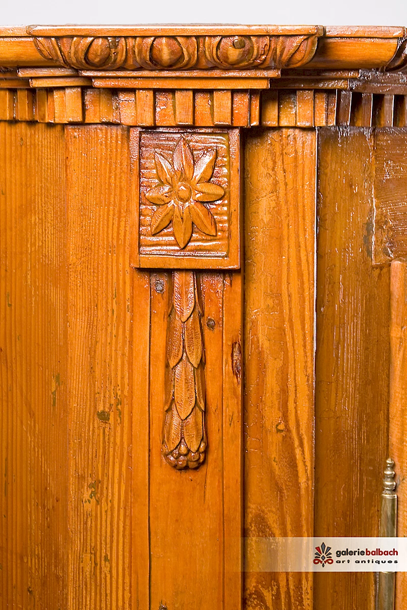 Abgeschrägte Lisenen mit Voluten-, Behang- und Sternschnitzerei.