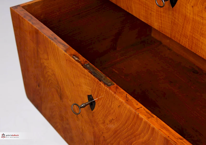 In Ebenholz eingelegte Schlüsselschilder unterstreichen die Schlichtheit des Möbelstückes.