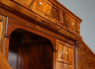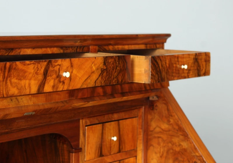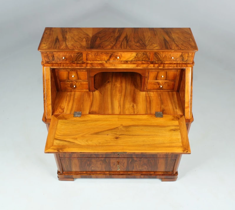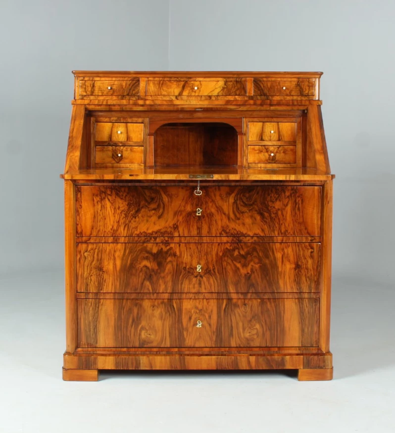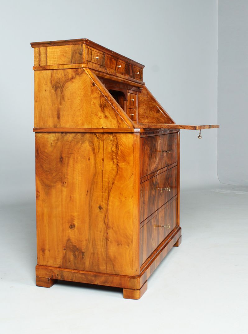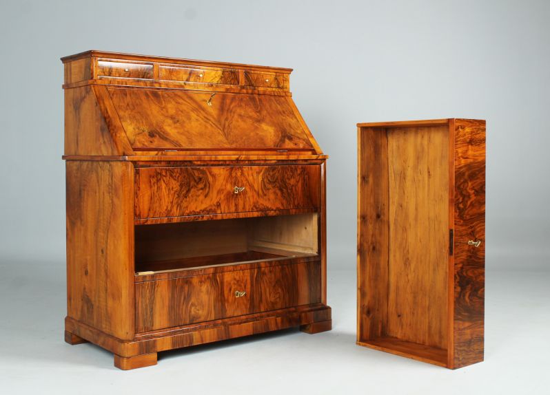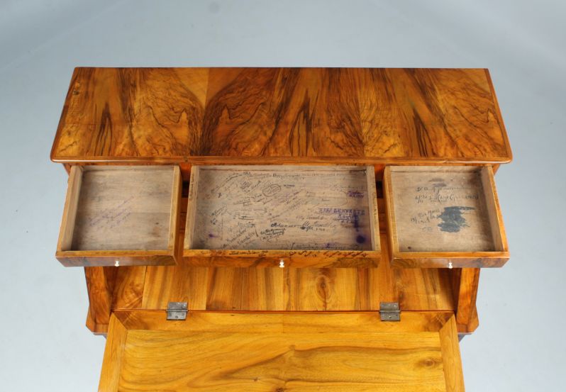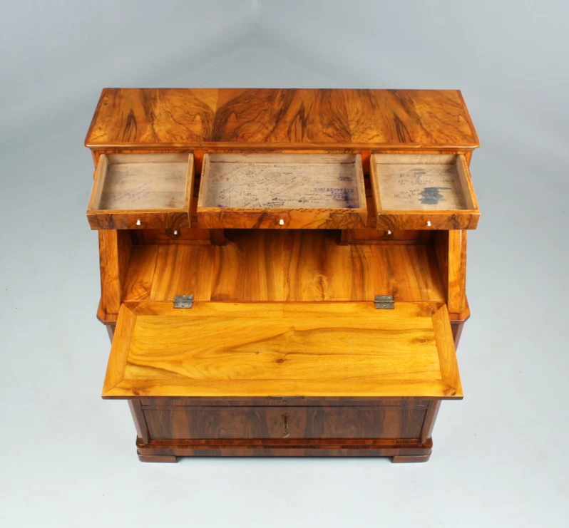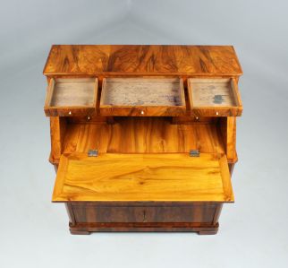 Der dreischübige kommodenähnliche Unterbau verhilft dem Möbelstück auch zu der Bezeichnung "Kommodensekretär".