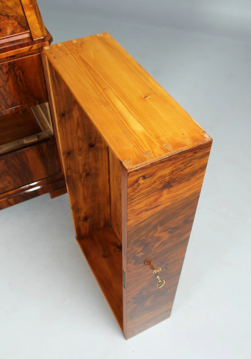 Wohnfertig restaurierter Zustand. Schellack Handpolitur. Alle Schubladen laufen einwandfrei, die Schlösser funktionieren.