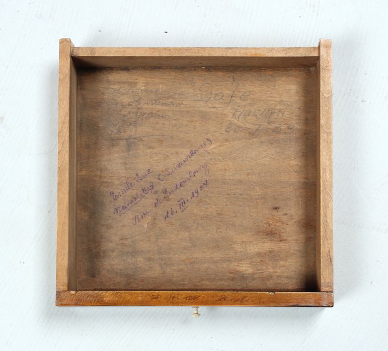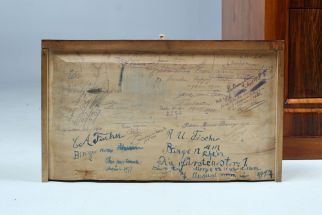 Die Vermutung liegt nahe, dass das Möbelstück zu der Entstehungszeit der Signaturen in einem öffentlich zugänglichen Raum wie einer Bibliothek, einer städtischen Einrichtung oder einem Museum stand.