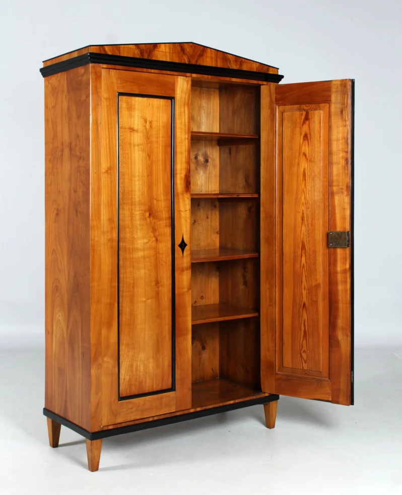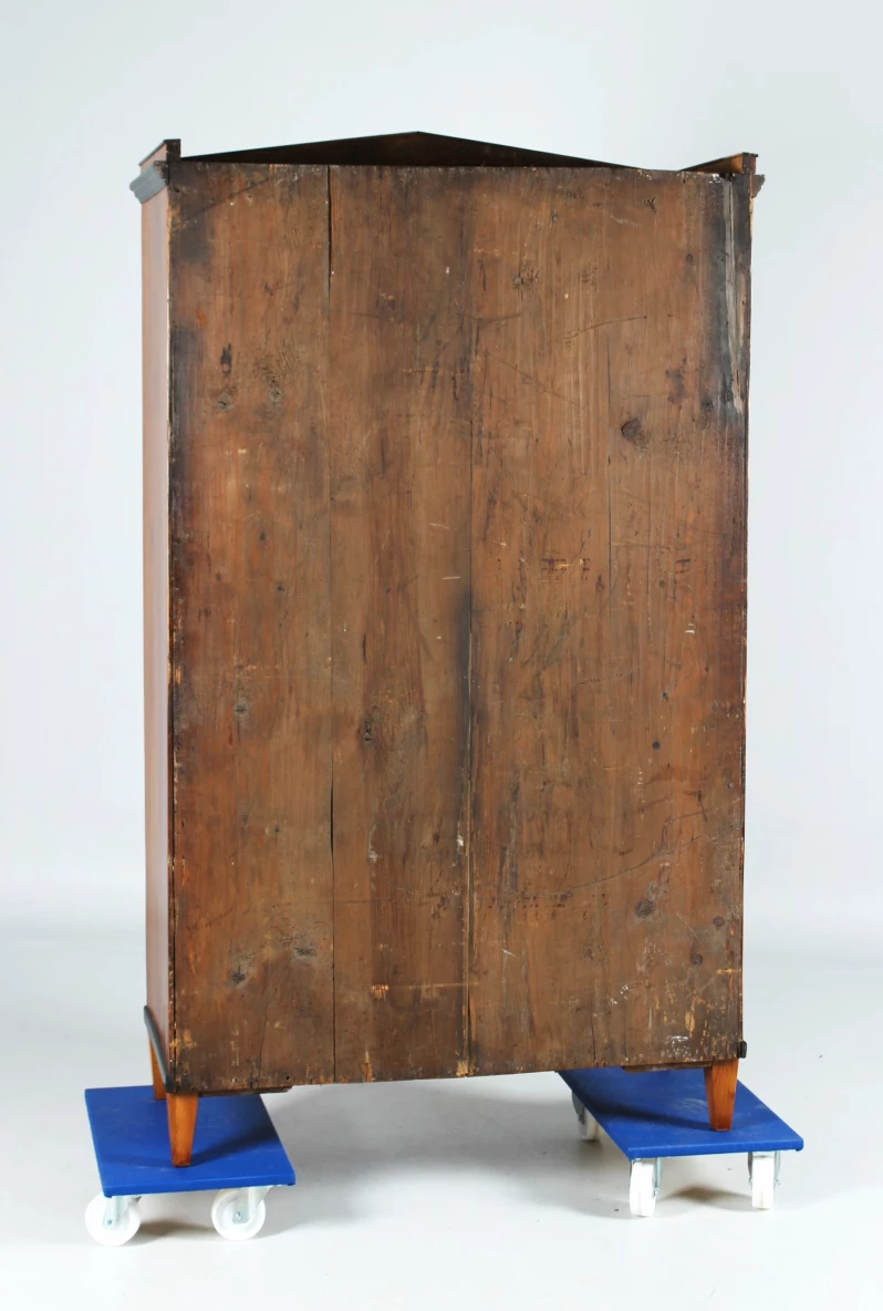 Die Türen sind in Rahmen-und-Füllung Bauweise gefertigt, die gespiegelte Maserung des Kirschholzes sorgt für die typisch biedermeierliche Symmetrie.