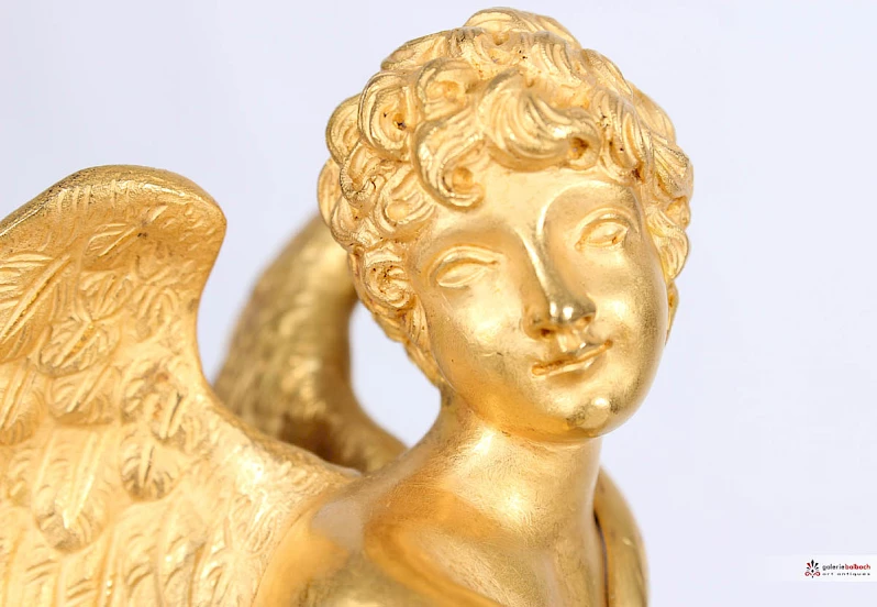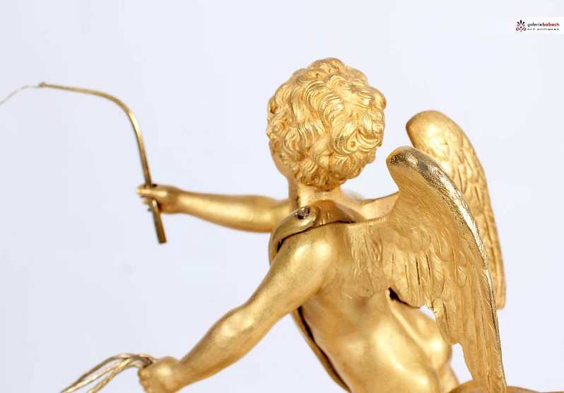 So besteht der Amor dieser Uhr beispielsweise aus insgesamt sechs einzeln gegossenen Teilen. Der Körper wurde in zwei separaten Hälften gegossen, die zwei Flügel auch jeweils einzeln. Das Brustband, die Toga, besteht ebenfalls aus zwei Einzelteilen.