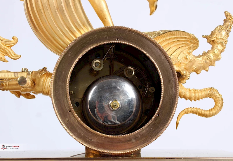 Zur Zeit des Empire (frühes 19. Jahrhundert) war es nicht möglich komplexe Bronzen in einem Stück zu gießen. Die Kunst bestand unter anderem also auch darin, die Einzelteile "unsichtbar" miteinander zu verbinden.