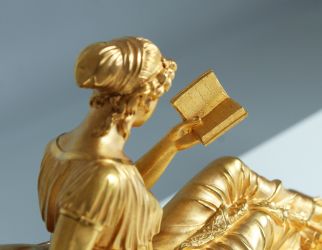 "Das Motiv einer jungen, à la grecque gekleideten Frau, elegant auf eine antikisierende Liege gebettet, wurde durch das Gemälde von Jacques Louis David (1748-1825) berühmt, das Madame Récamier auf dem später nach ihr benannten Möbel zeigt. Auch die nicht minder berühmte Paolina Borghese, Schwester Napoleons, ist von Antonio Canova (1757-1822) in ähnlicher Liegeposition - allerdings nahezu nackt - dargestellt worden."