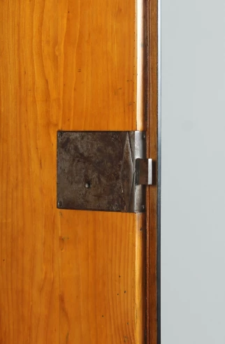 Beeindruckend finde ich die sauber verlegten Nussbaum Hölzer. Den Sockel und den in der Breite korrespondierenden Teil des Kopfes hat man bewusst in einem dunkleren Ton furniert. Dadurch bekommt das Möbel eine ganz klar definierte horizontale Gliederung.
