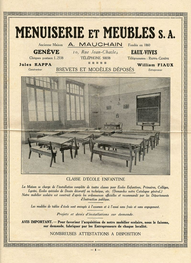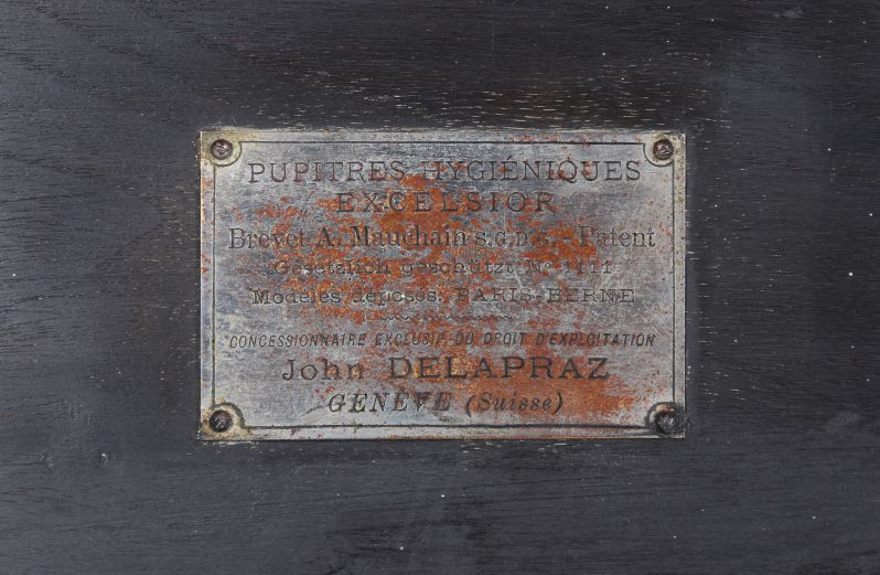 Gefertigt wurde das Möbelstück von dem Genfer Möbelhersteller A. Mauchain, der sich auf die Herstellung von rückenfreundlichen Schreib- und Schulmöbeln spezialisiert hatte.