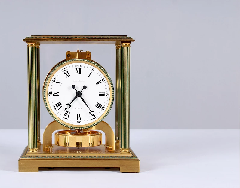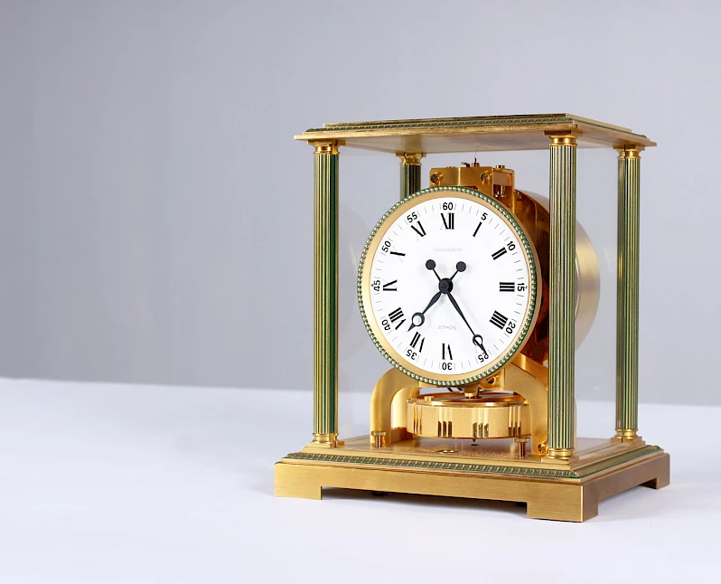 Man konzentrierte sich auf die Entwicklung eines einfacheren und robusteren Motor und ab 1938 begann die Ära der Atmos von Jaeger-LeCoultre.