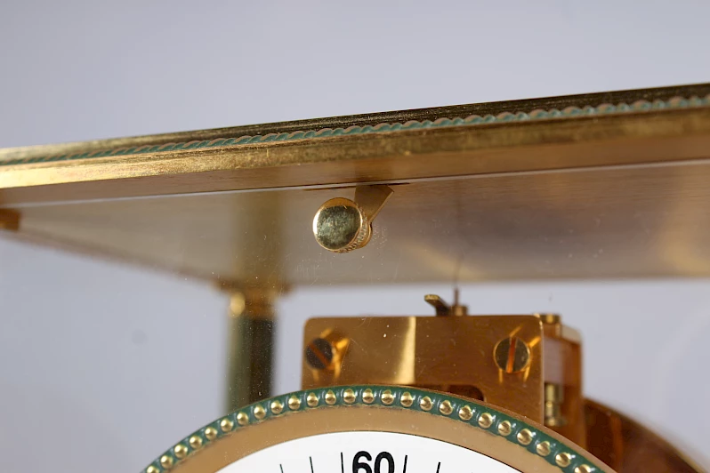 Die Atmos Vendome wurde in verschiedenen Variationen produziert. Mit vergoldetem Sockel oder auch mit Marmorbasis. Die erste Vendome erschien im Jahre 1962. Das hier angebotene Modell mit der Nummer 5834 wurde von 1973-1985 produziert.