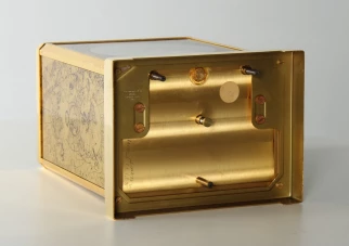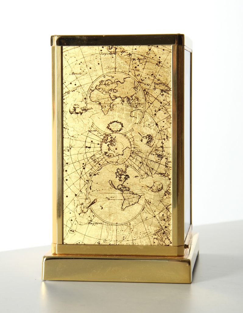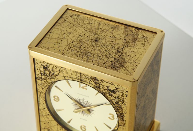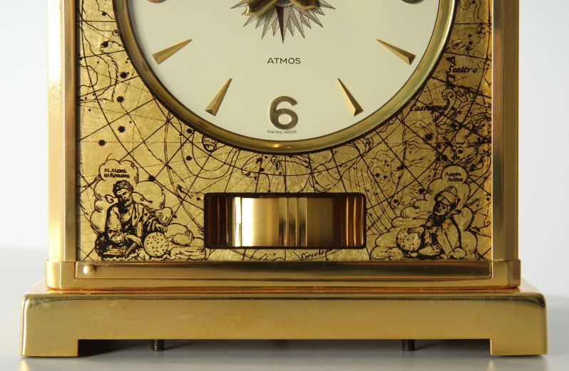 Atmos V Kaliber 526 in der Sonderausführung "Feuille d'or". Dieses Modell mit dem Motiv "Constellation" ist unter der Ref. Nummer 5802 von 1962-1975 gebaut wurden. Trotz des recht langen Produktionszeitrahmens von knapp 13 Jahren taucht die Uhr verhältnismäßig selten im Handel auf.