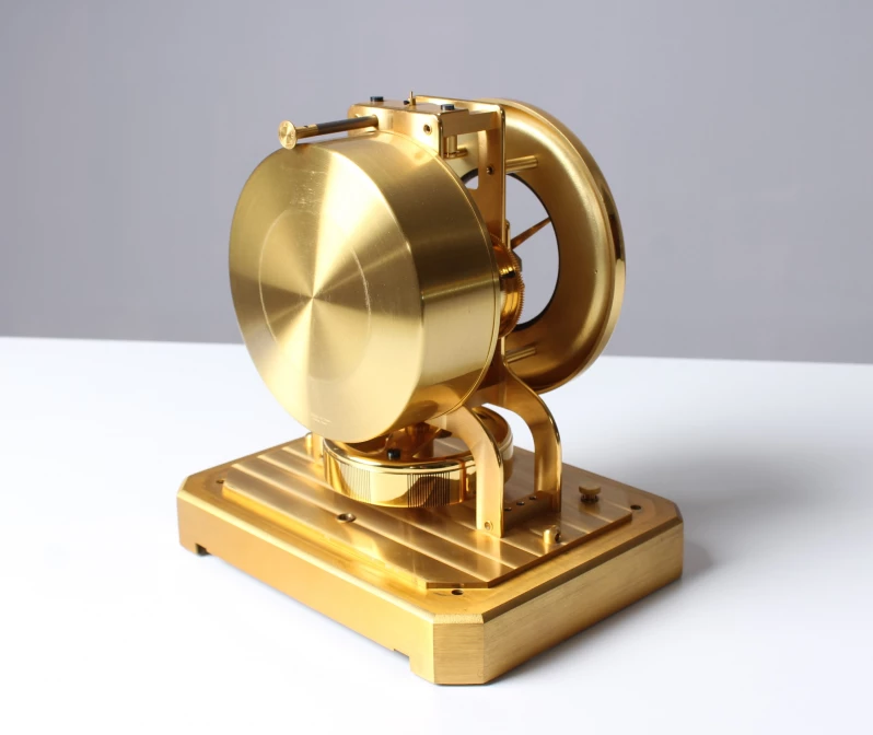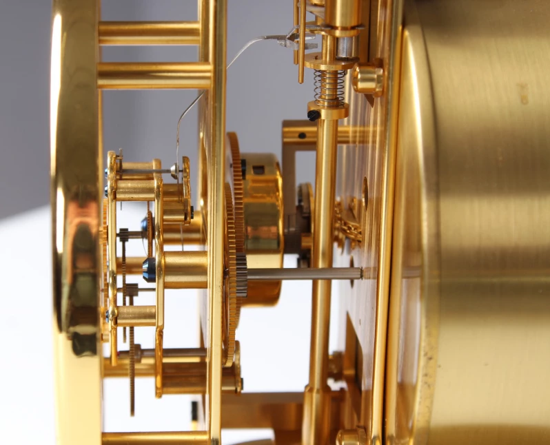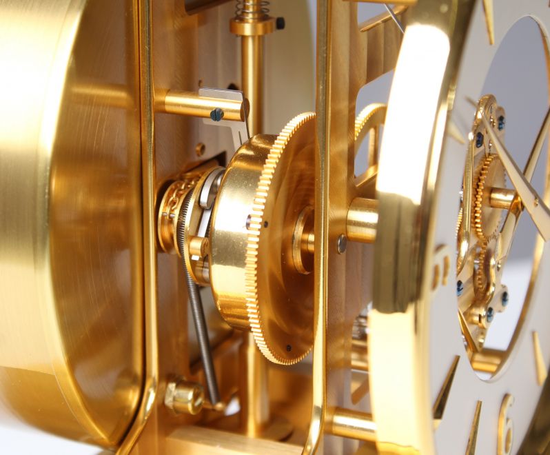Eine Temperaturdifferenz von nur einem Grad Celsius zieht die Uhr für 48 Stunden auf. Dieser interessante Aufzugmechanismus findet seine Ergänzung in einem vorzüglichen Uhrwerk äußerster Präzision mit einem schweren Torsionspendel (Drehpendel).