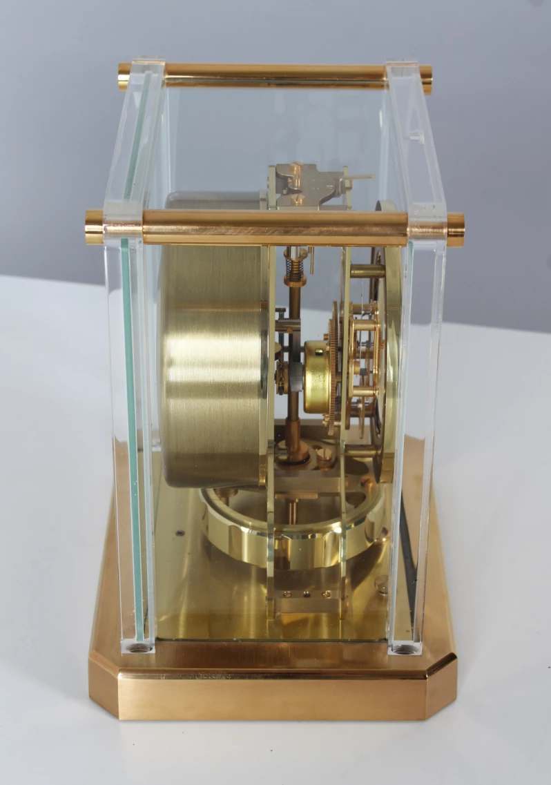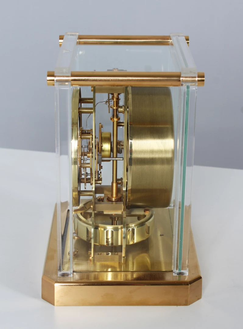 Man konzentrierte sich auf die Entwicklung eines einfacheren und robusteren Motor und ab 1938 begann die Ära der Atmos von Jaeger-LeCoultre.
