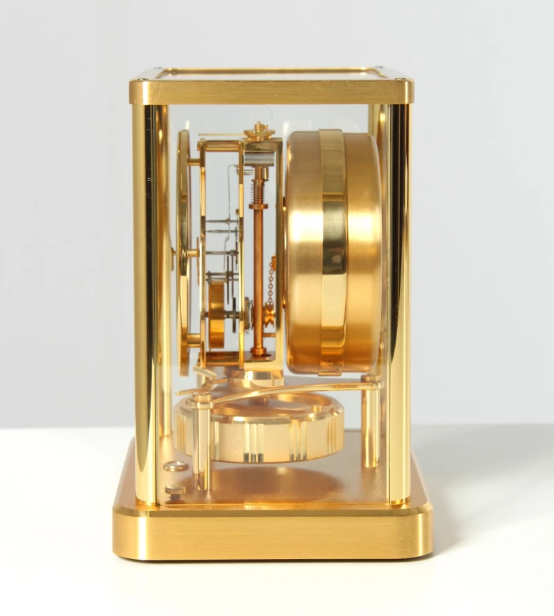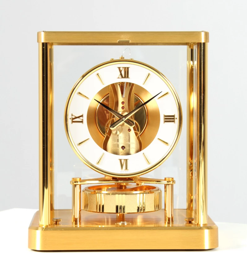 Atmos "Classic" im 24 Karat vergoldeten Gehäuse.