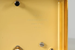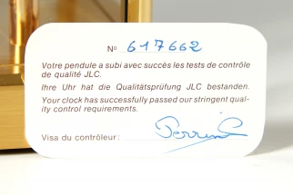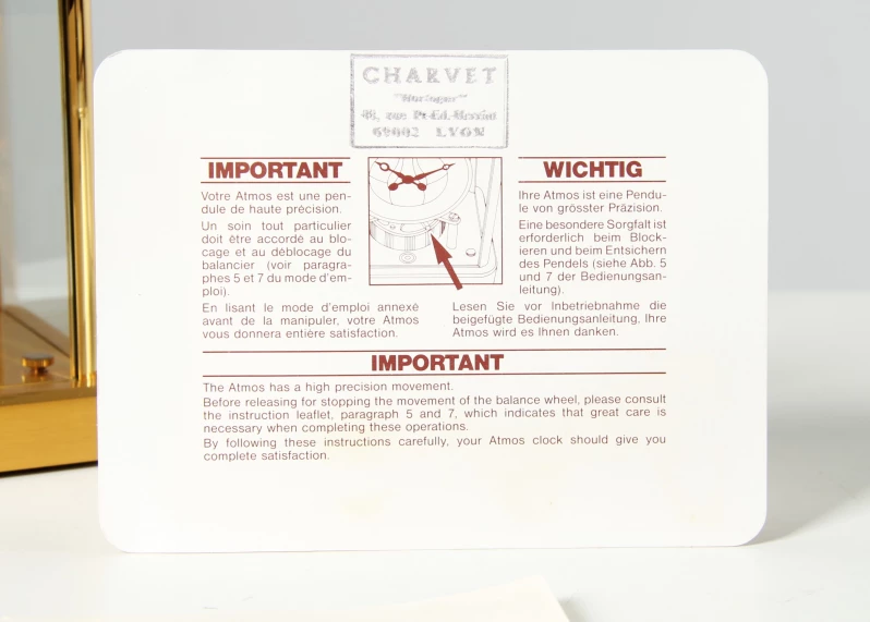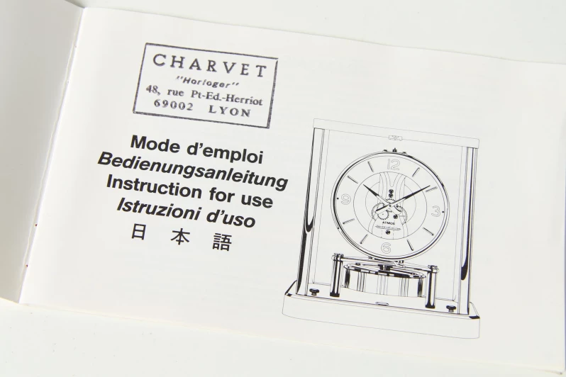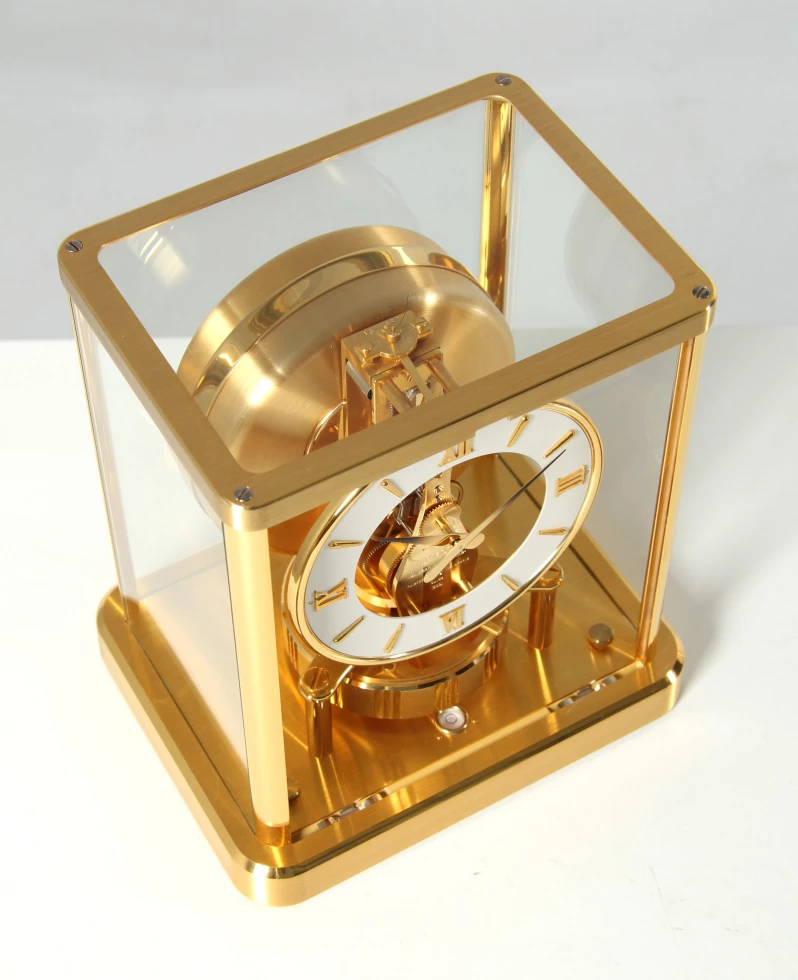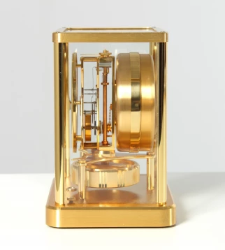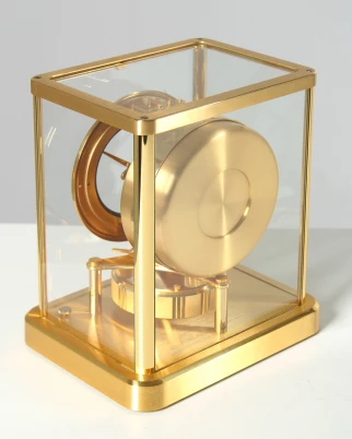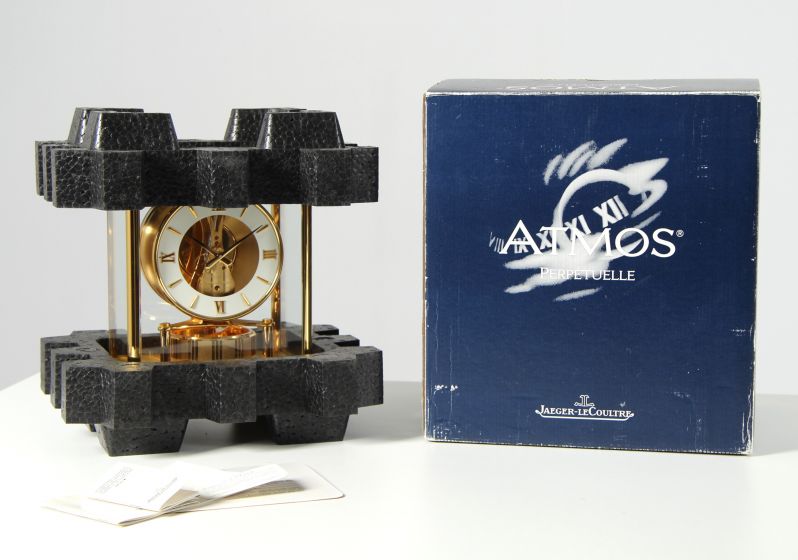 "Als würde sie in der Luft schweben, dreht sich die ringförmige Unruh mit unendlicher Langsamkeit, ohne jemals stehen zu bleiben. Die Tischuhr Atmos Classique mit vergoldetem Gehäuse ist die vollkomene Vereinigung von Technik und Ästhetik." Kollektionsbroschüre Jaeger LeCoultre