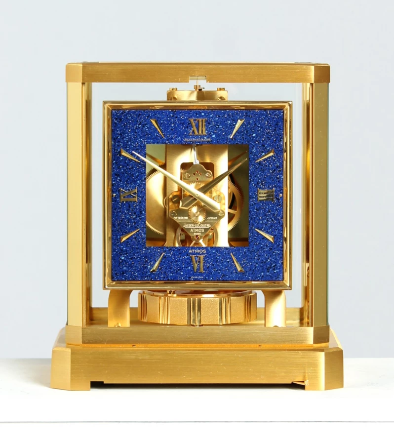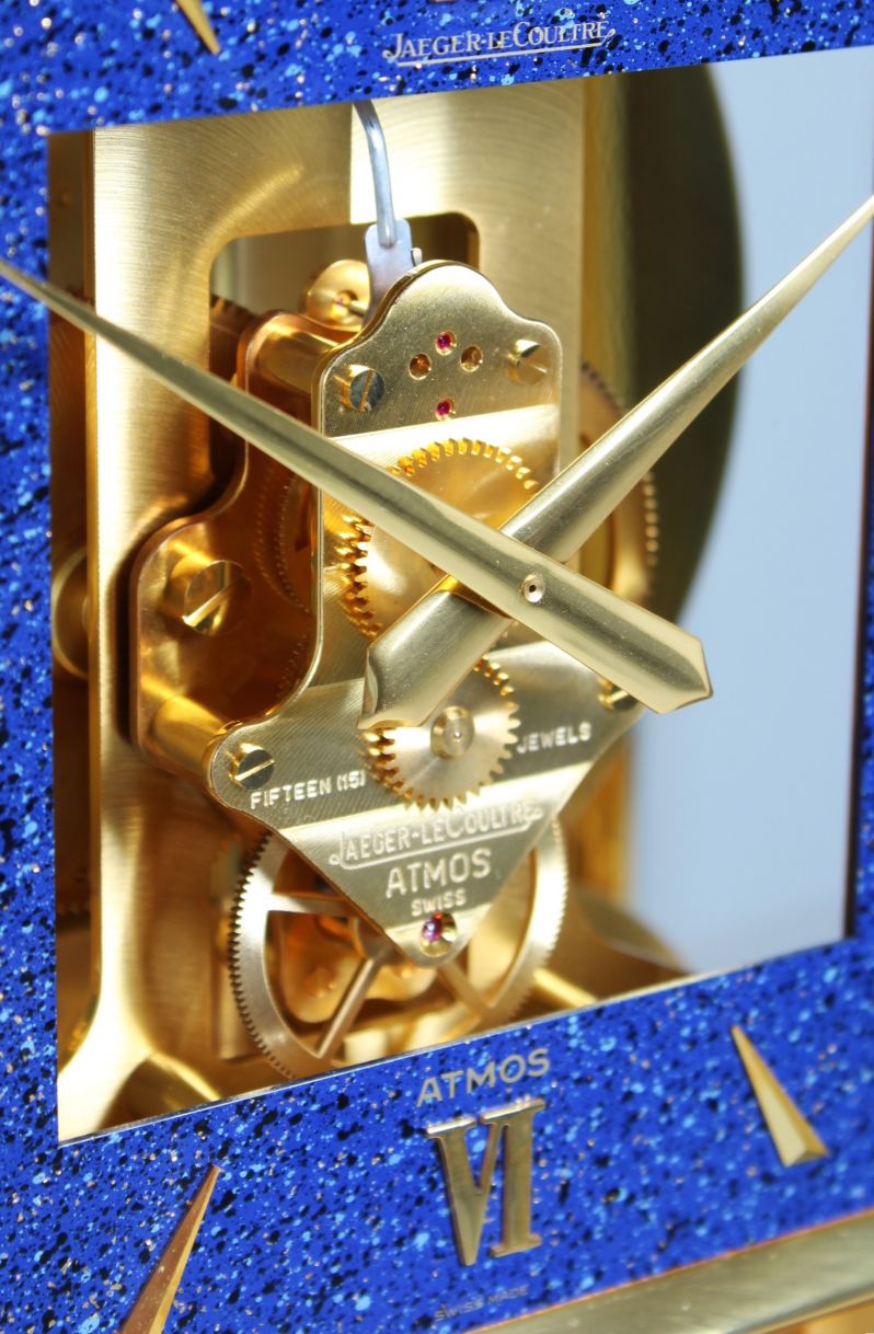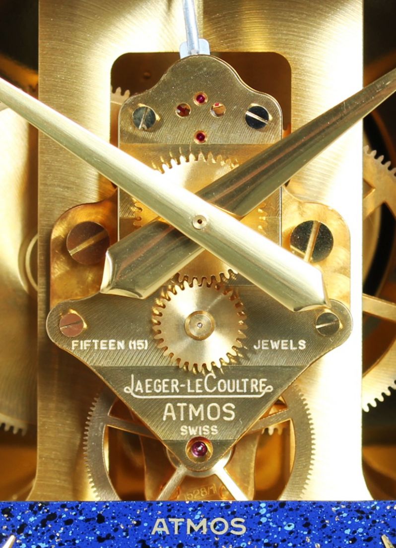Den Aufdruck "Jaeger LeCoultre" finden wir unterhalb der XII, "ATMOS" sowie "SWISS MADE" im Bereich der VI.