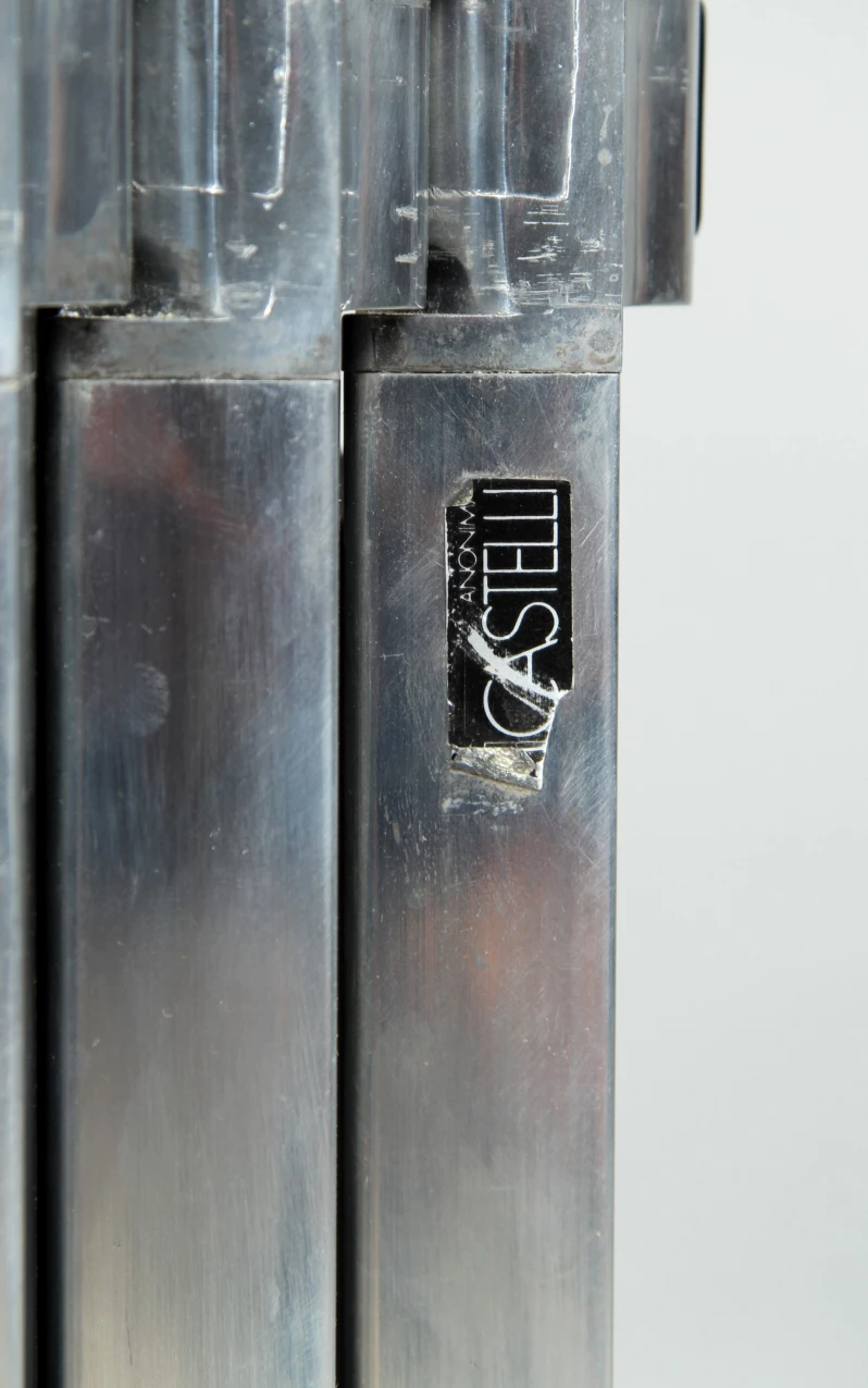 In den 1960er und 1970er Jahren arbeitete Piretti außerdem bei der Designfirma Castelli, für die er ästhetische und funktionale Möbel entwarf. Für den hier angebotenen "Plano" Tisch erhielt er 1971 die Goldmedaillie des IBD.