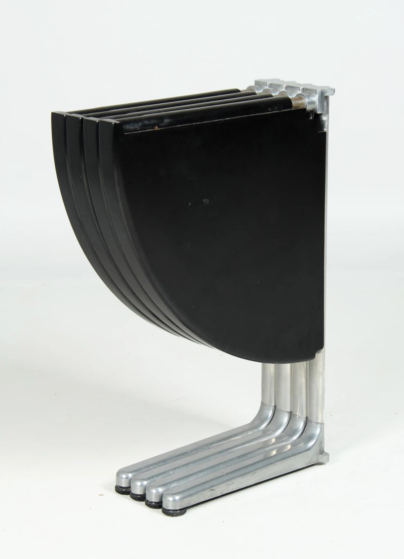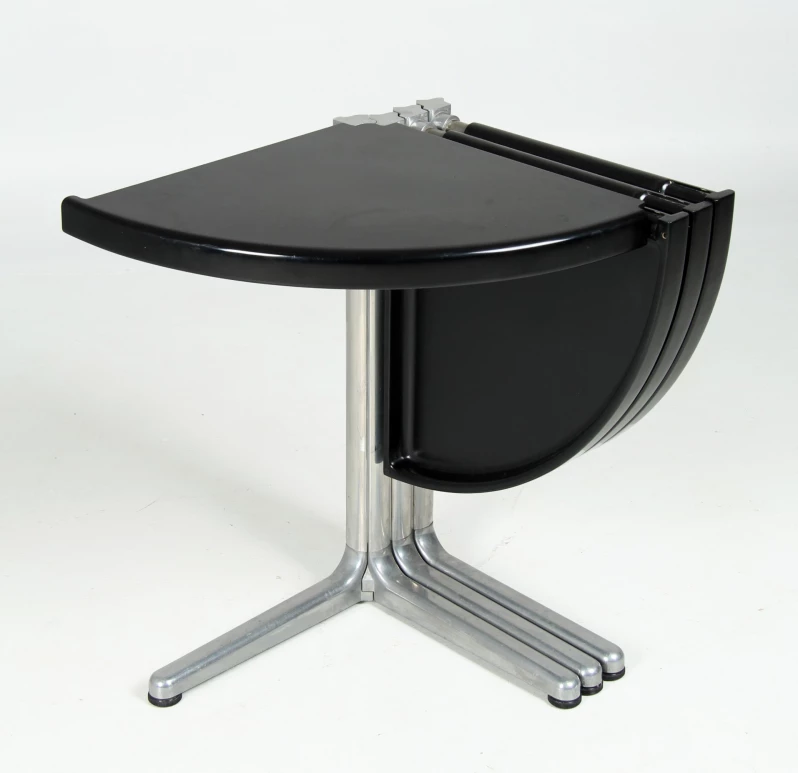 Außergewöhnlicher Klapptisch mit zahlreichen Variationsmöglichkeiten. Entworfen von Giancarlo Piretti für Castelli in den 1970er Jahren.