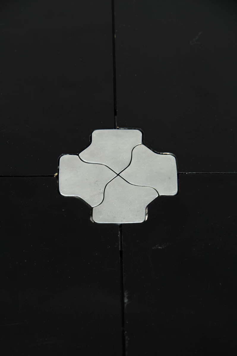 Mit der vierteiligen Tischplatte eignen sich das Möbelstück als Ecktisch, Halbtisch oder als runder Esstisch mit 101 cm im Durchmesser.