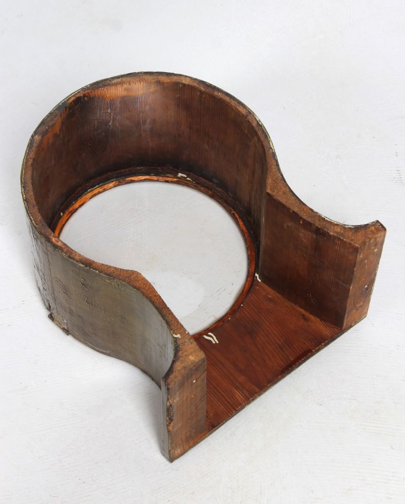 Geradliniger Kasten mit rundem Kopf. Dunkelgrüne Farbfassung. Geriffelter Mittelteil.