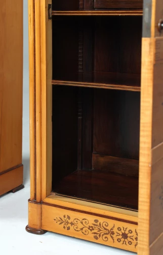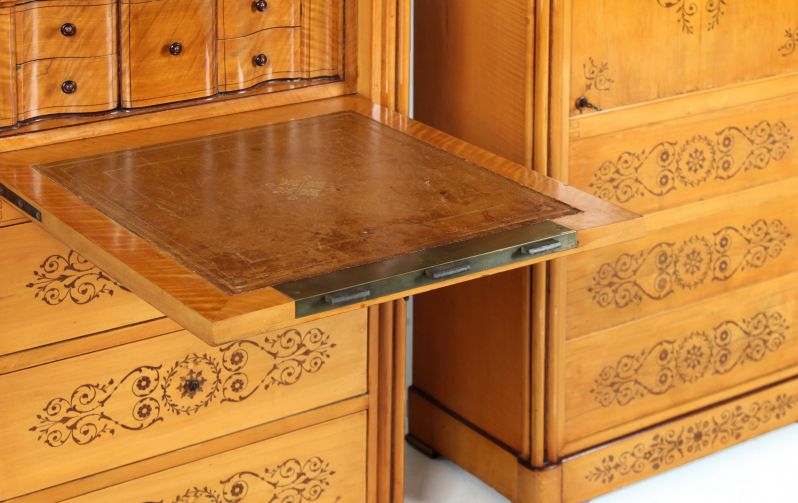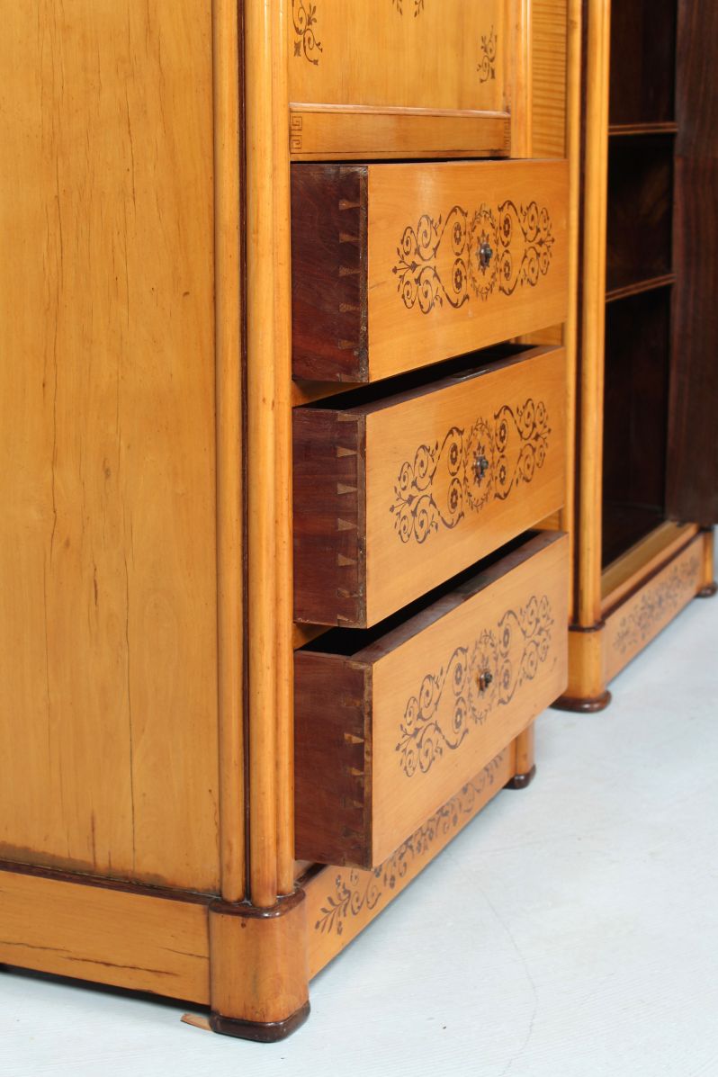 Da man mit einem Schreibmöbel im Raum auskam, wurde das Gegenstück zum Sekretär als Schrank, als sogenannter "Blender", ausgeführt.