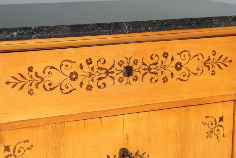 Zustand: Wunderbarer Erhaltungszustand mit schöner Alterspatina. Die vorgefundene Politur wurde nur leicht aufgefrischt.