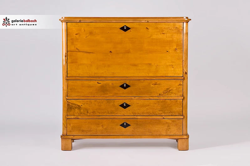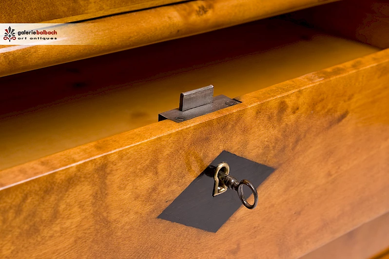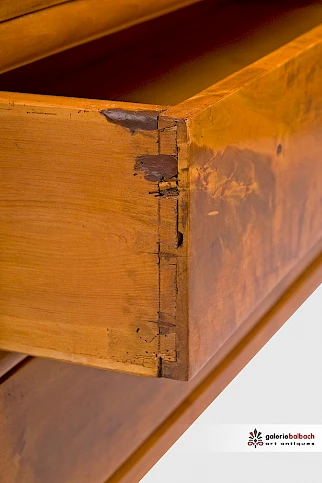 Massives Birkenholz ist auch typisch für die Gegend, in Deutschland hätte man eher furniert, was das Holz stärker “geflammt“ erscheinen ließe.