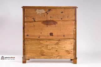 Annähernd quadratische Front mit drei Schubladen und der obenliegenden Klappe.