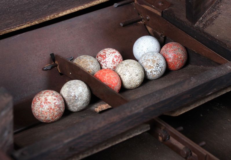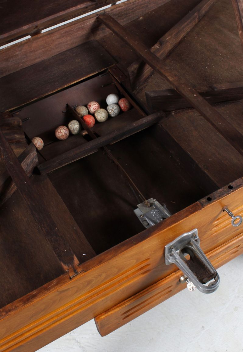 There are 10 original cork balls. The release of the balls works without coin insertion.