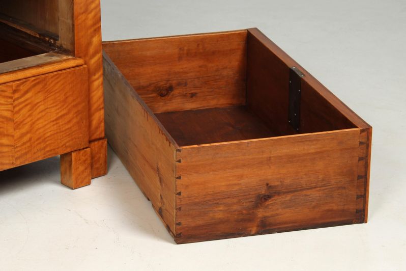 All box corner joints - both in the area of the inner compartment and the large outer drawers - are precisely crafted with classic dovetail joints.