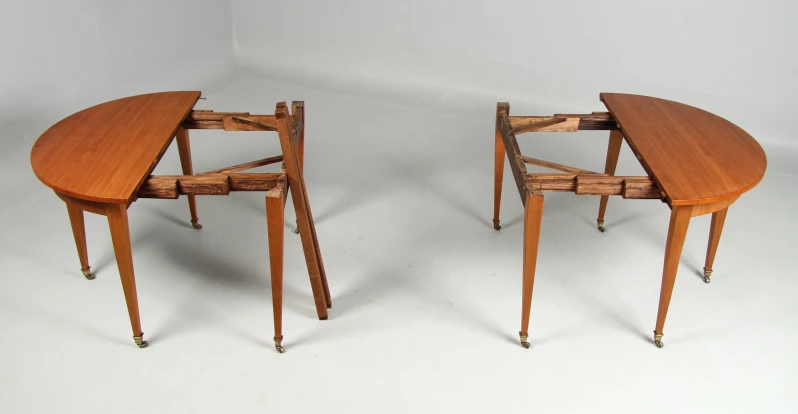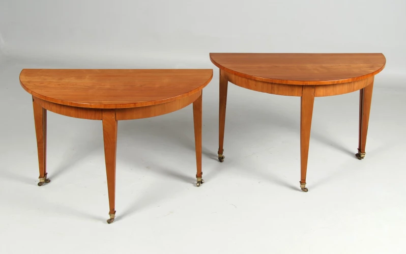 Firstly, we see two wall-mounted consoles with a double row of legs at the back. The semi-circular shape gives them the name "Demilune".