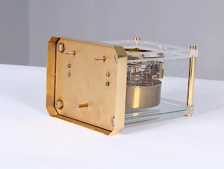 A temperature difference of only one degree Celsius winds the watch for 48 hours. This interesting winding mechanism is complemented by an exquisite movement of the utmost precision with a heavy torsion pendulum.