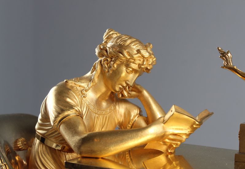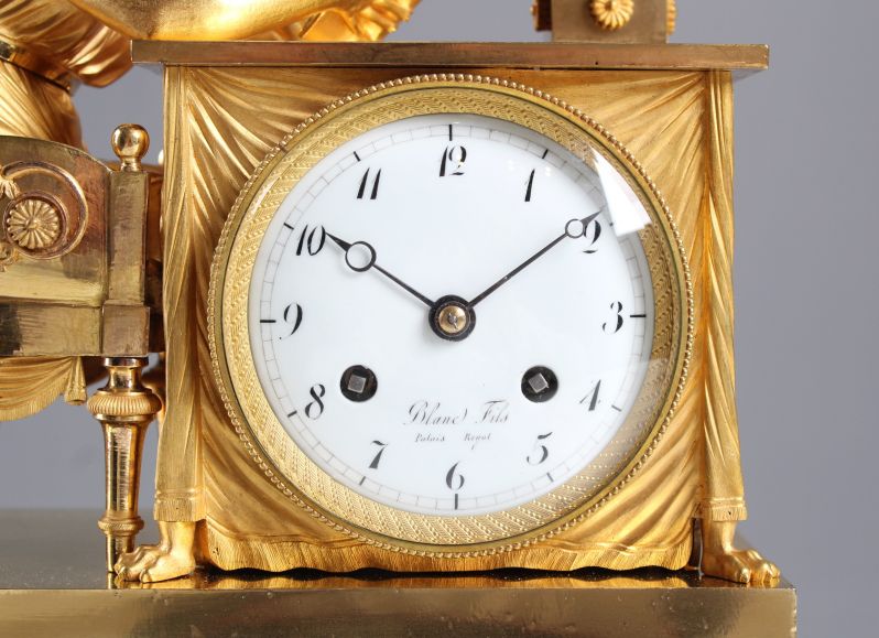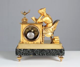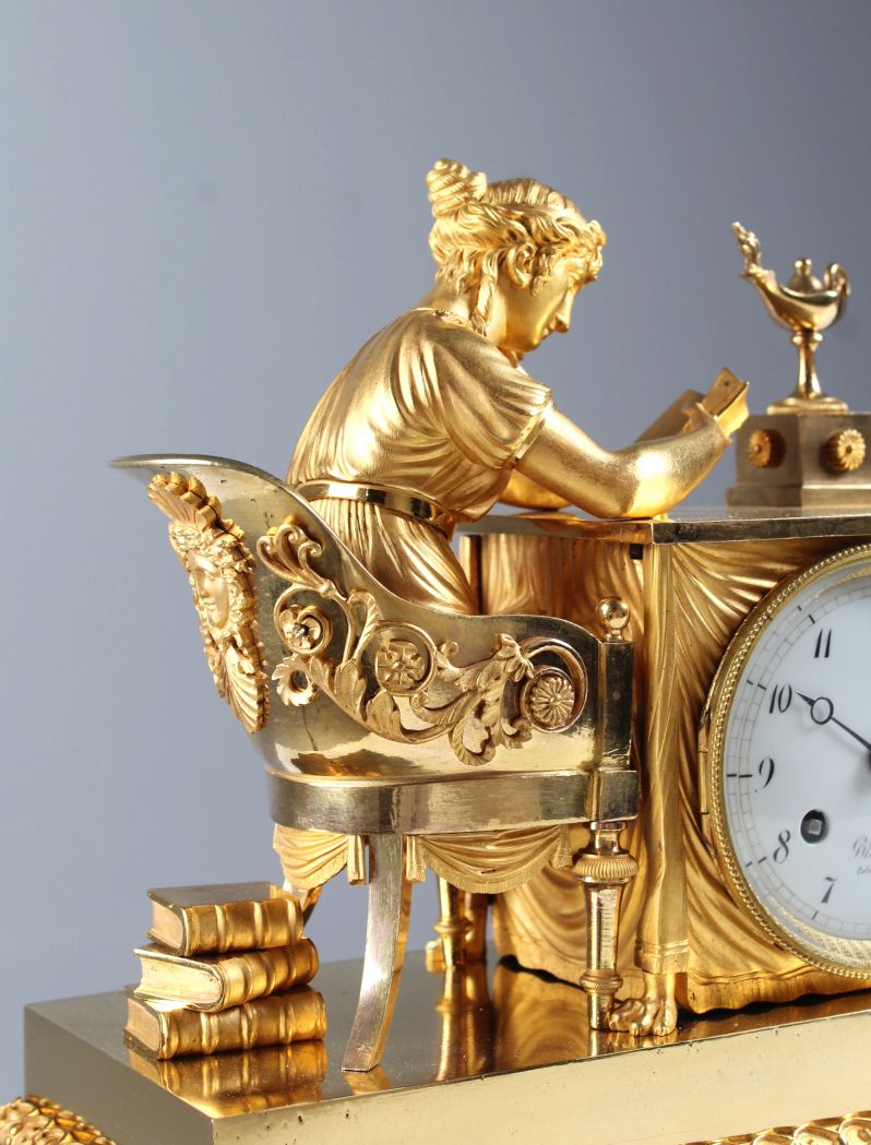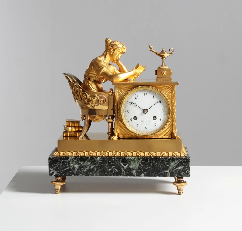 The pendule "La Lieuse" is probably the most famous clock, by the sculptor and bronze caster Jean-Andre Reiche, who was born in Leipzig and became famous in Paris.