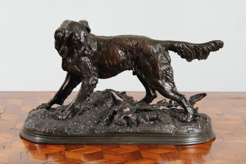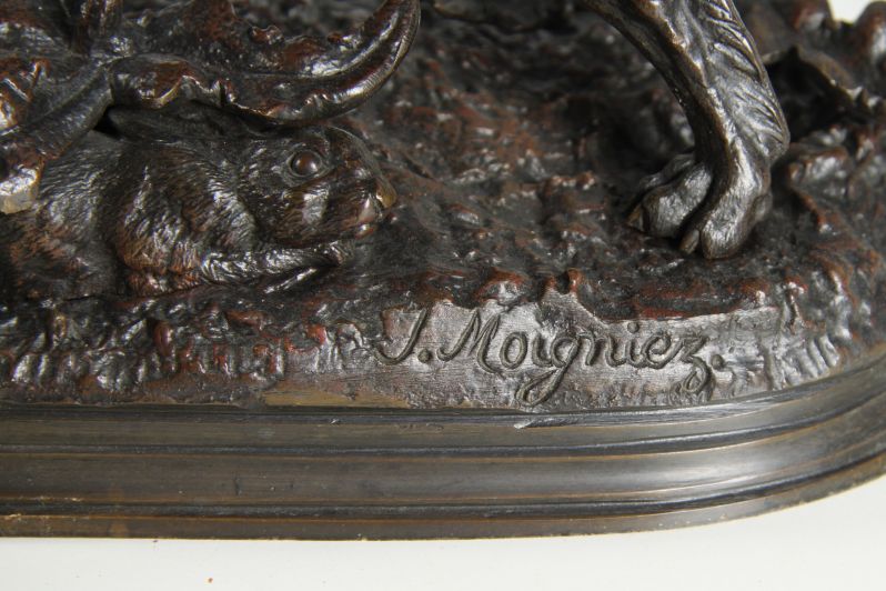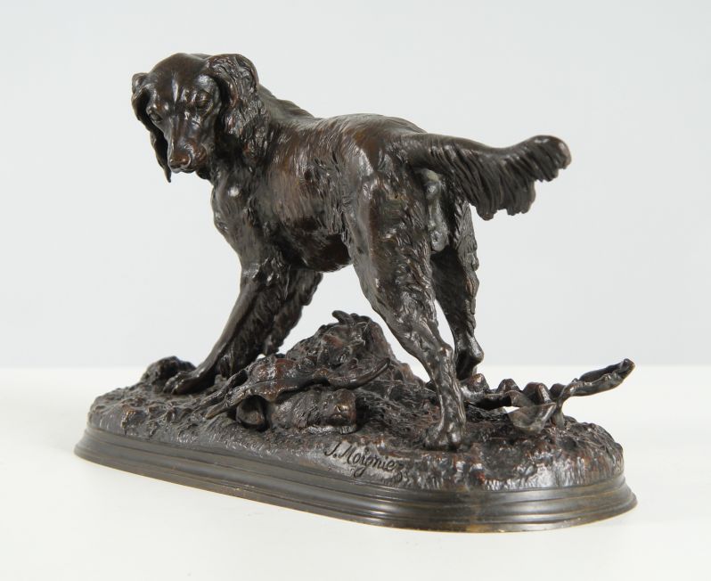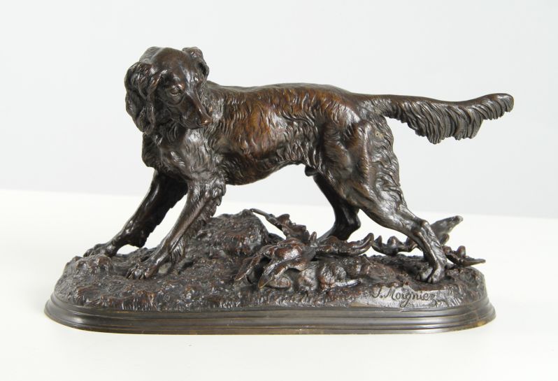 Jules Moigniez was born in Senlis in 1835 and was a pupil of Paul Comoléra, a specialist in depicting birds. His artistic breakthrough came at the Exposition Universelle in 1855 and he later exhibited regularly at the Paris Salon. His sculptures - mostly animals in motion, hunting scenes or horses - are characterised by high technical precision and realistic anatomy.