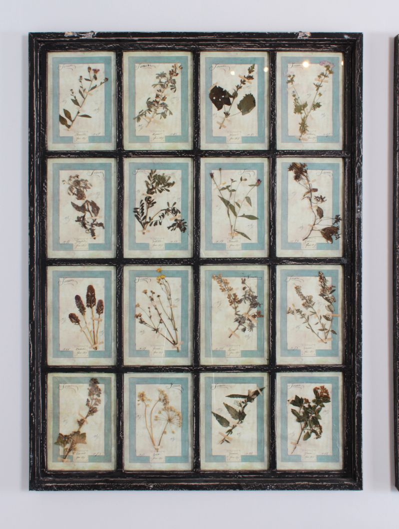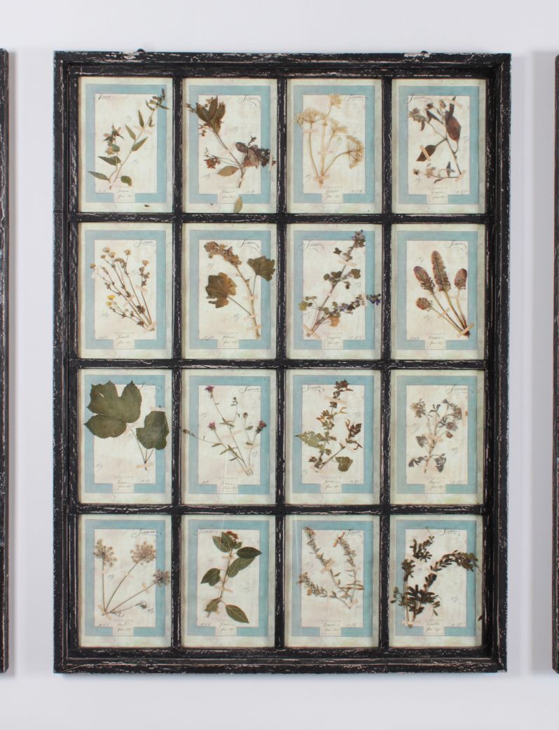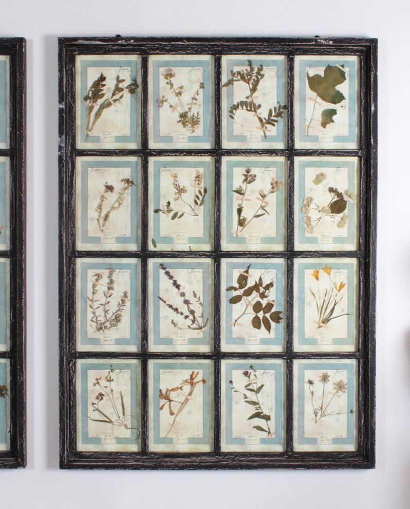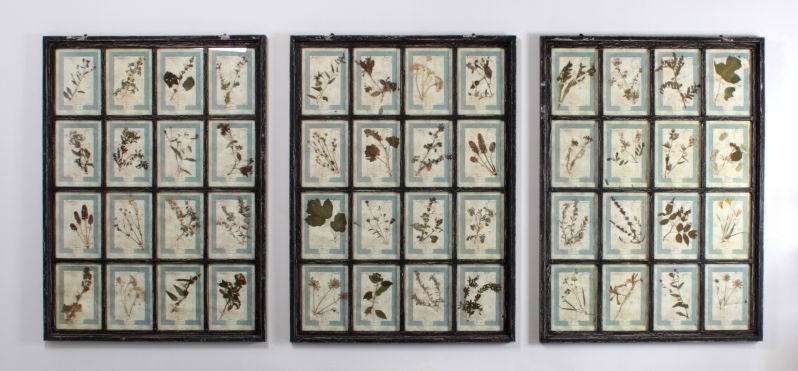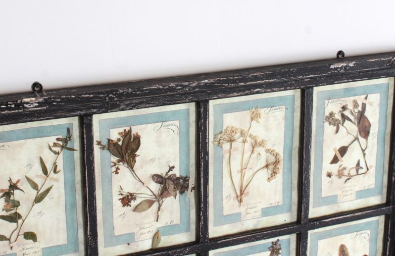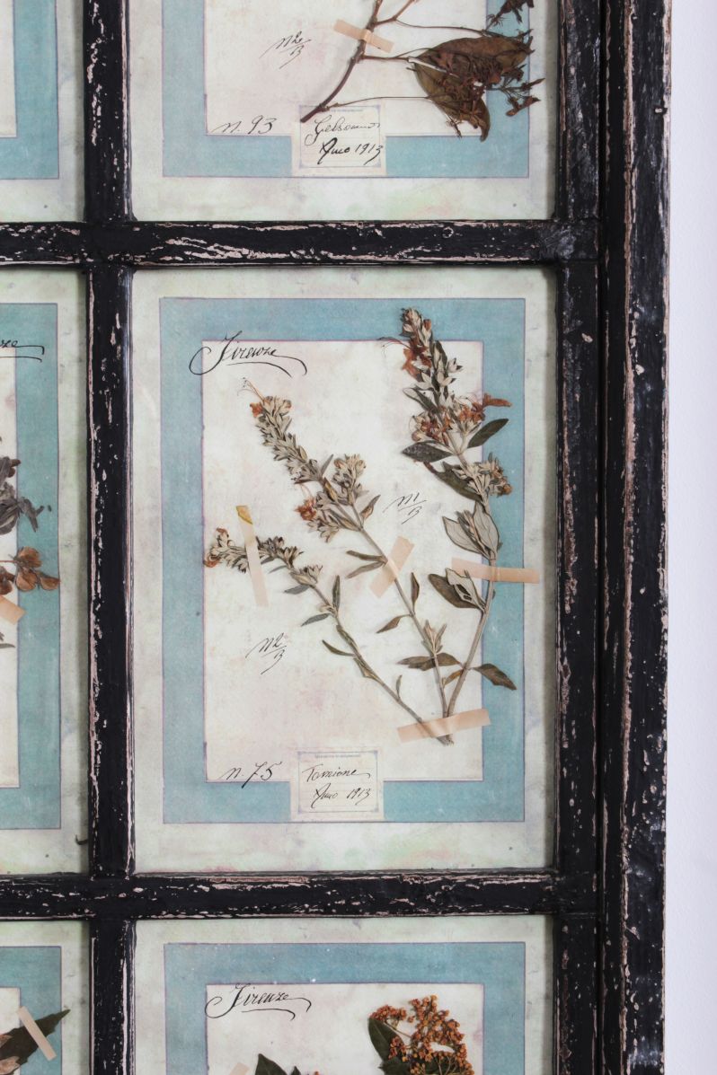 In total, the collection consists of 48 individual plant studies, 16 of which are framed in old muntin windows.