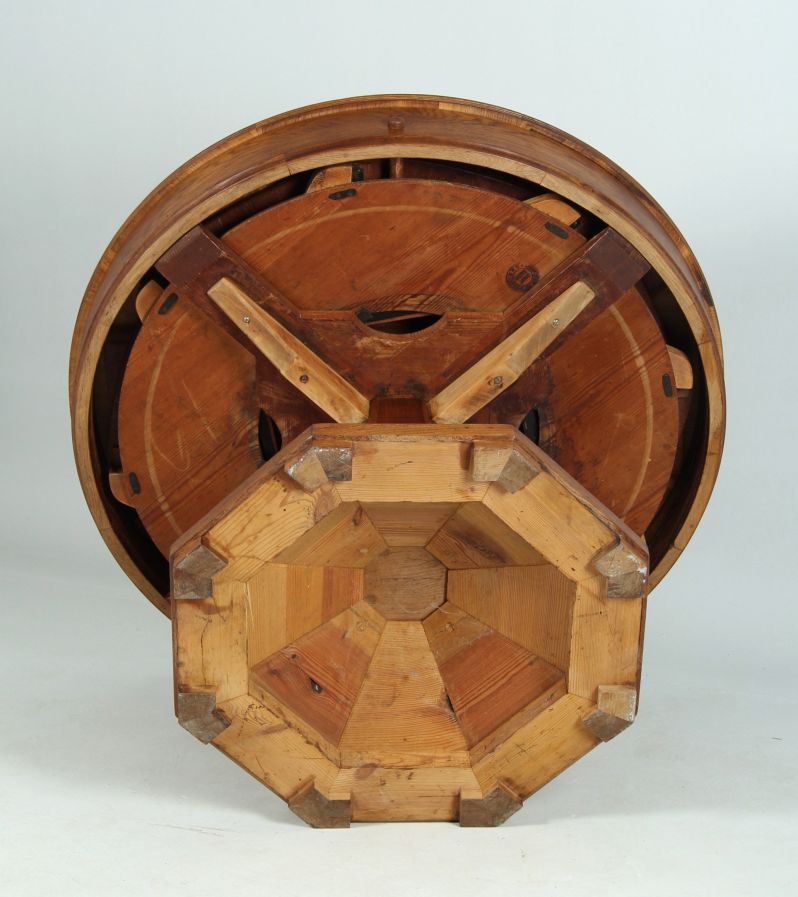 With this absolutely rare and well thought-out system, the frame is first turned down using a thread. Eight segments that fit around the table can then be turned out.