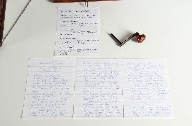 There is a written list of previous owners with corresponding years and a written history of the clock.