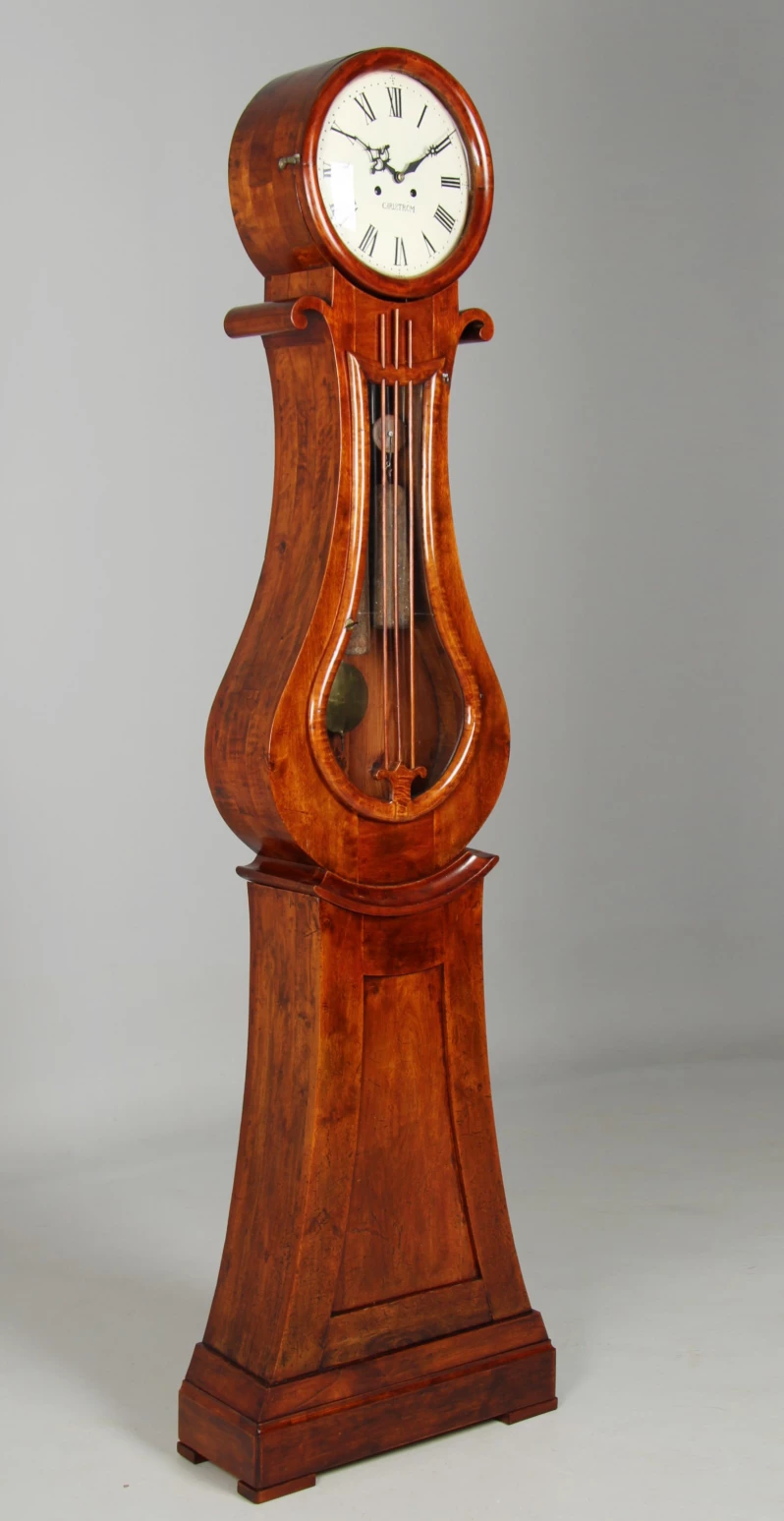 Unusual Swedish grandfather clock from the mid-19th century in the shape of a lyre.