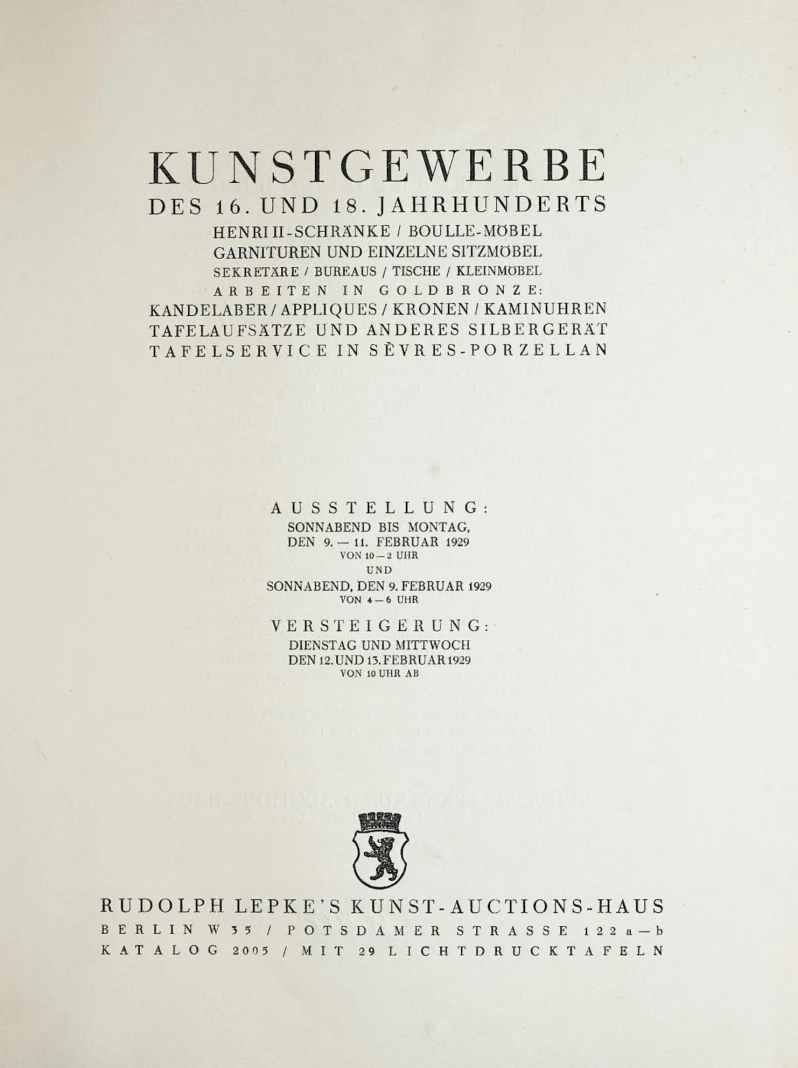 Auction house Lepke Berlin, 12 February 1929, lot 90 (see illustration)