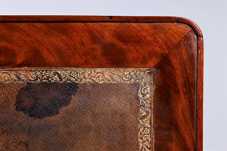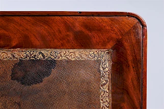 Le cadre est plaqué en acajou. Les placages sont posés en miroir.