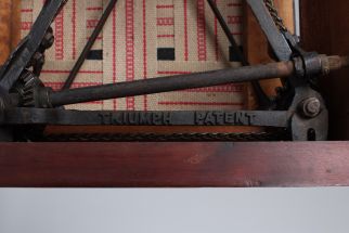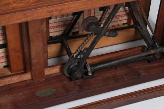 Les deux assises peuvent être réglées en hauteur grâce à un système de roues dentées et de chaînes. Le "brevet Triumph", vieux de plus de 100 ans, fonctionne encore parfaitement aujourd'hui. Il est impressionnant de voir la solidité de la technique en fer avec laquelle ce meuble pourtant filigrane est manipulé.