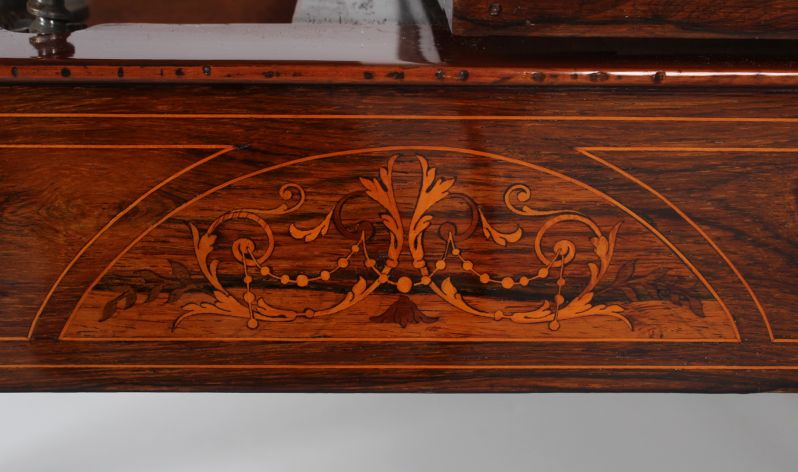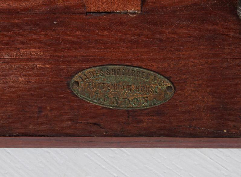 Une plaque du célèbre atelier de meubles londonien "James Schoolbred & Co London" est apposée sur la face inférieure. Schoolbred était l'un des plus importants fabricants de meubles anglais du 19e et du début du 20e siècle.