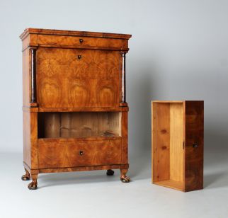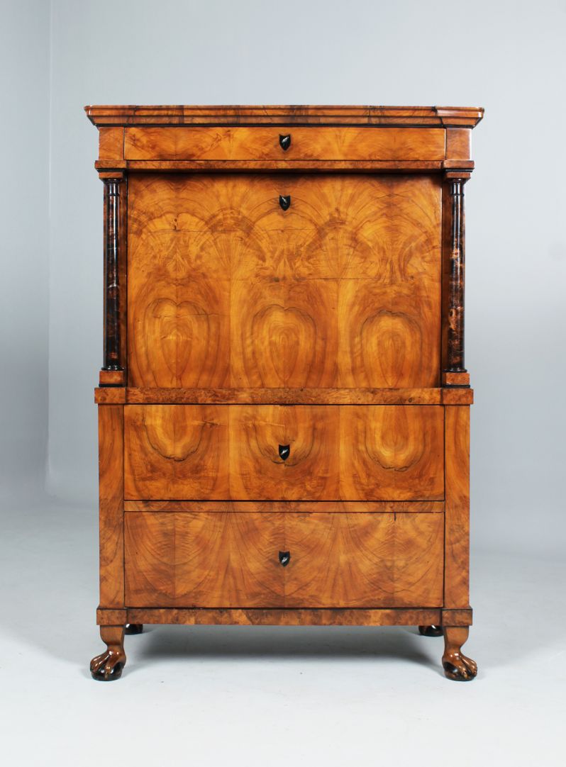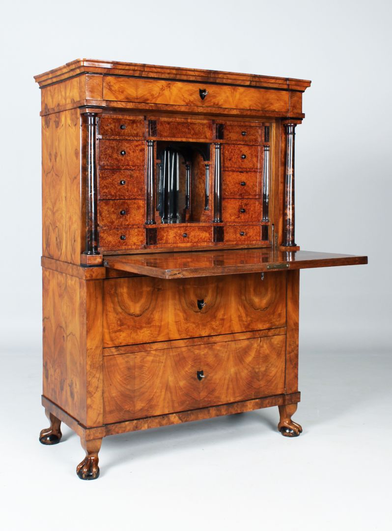 Prix : Ce secrétaire n'est plus disponible. Le prix de pièces comparables en termes de qualité, d'âge et d'état se situe aux alentours de 8000,-€ à 9000,-€.