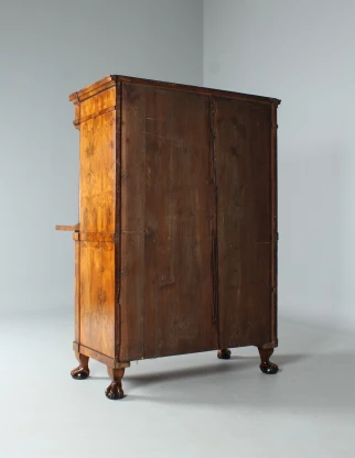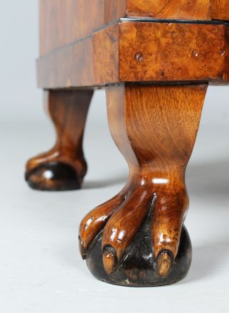 Meuble à écrire reposant sur des pieds à griffes en noyer massif.