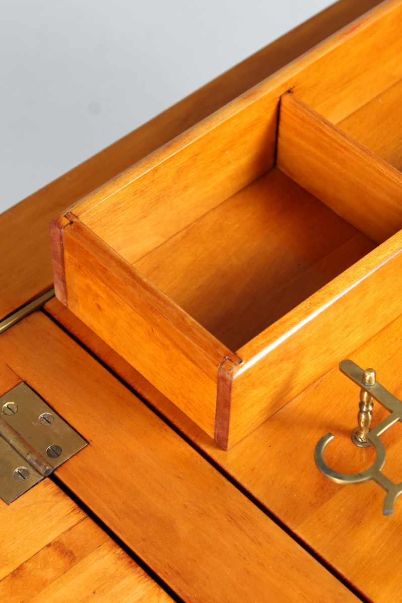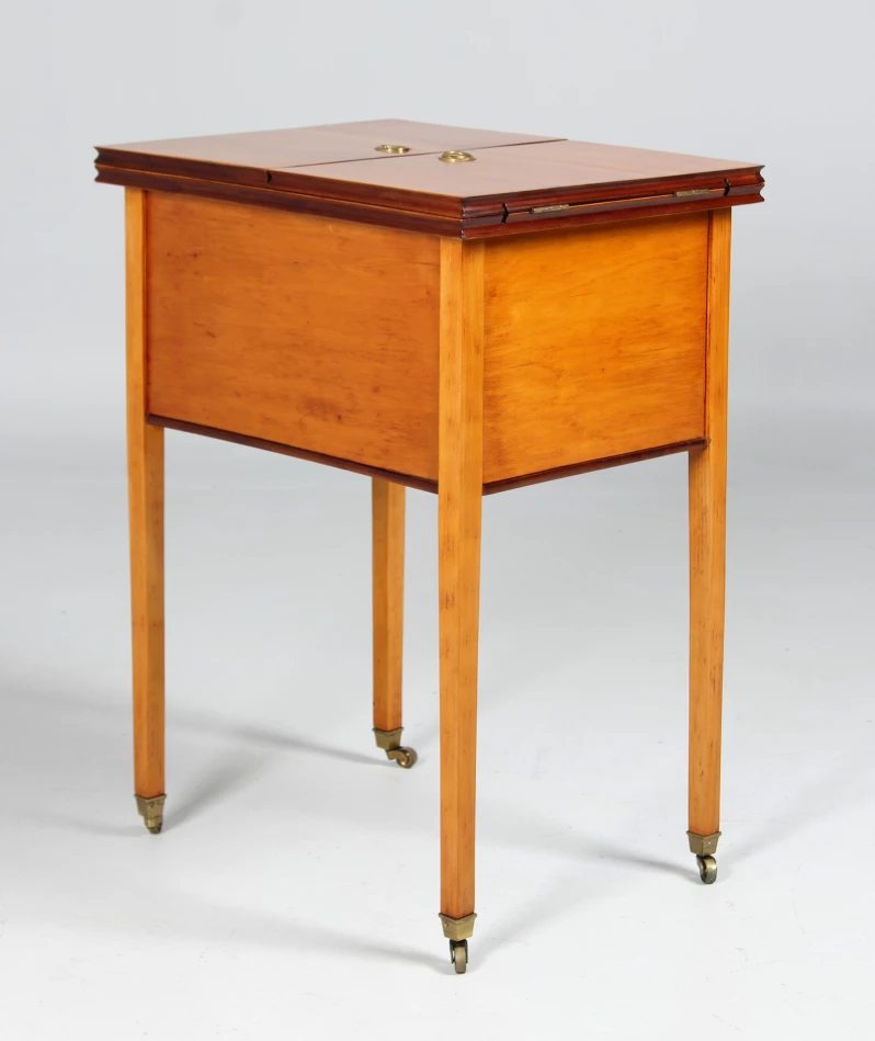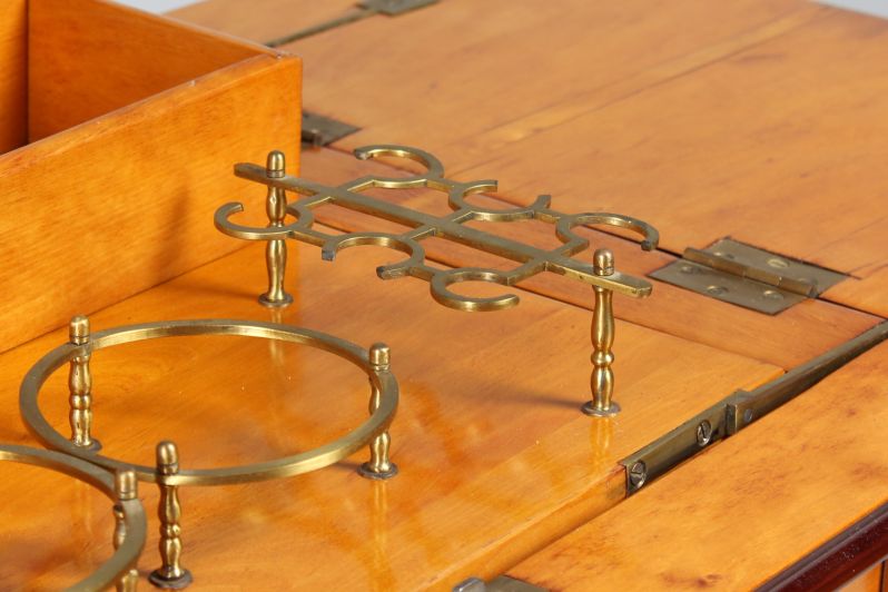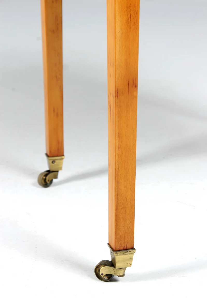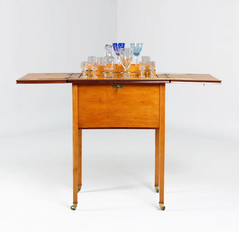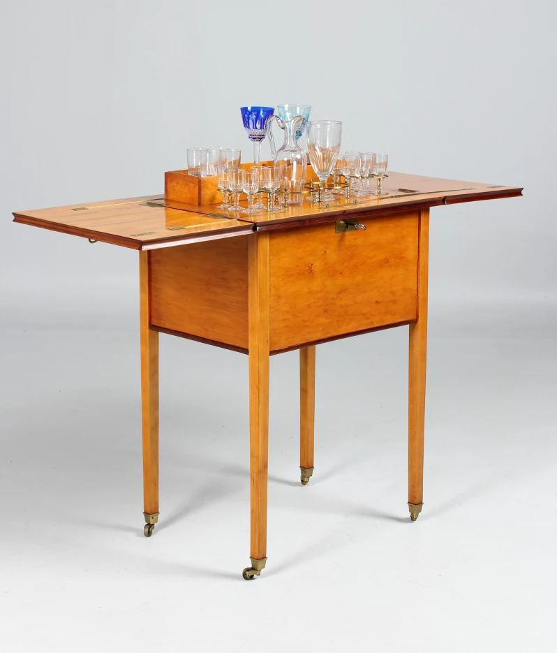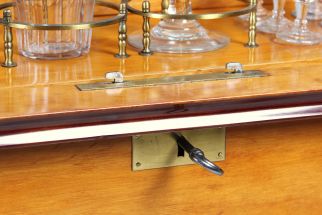 Monté sur des pieds droits dans des sabots en laiton, ce meuble est à roulettes.