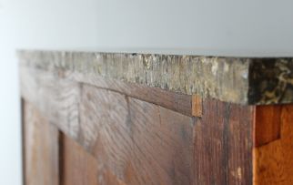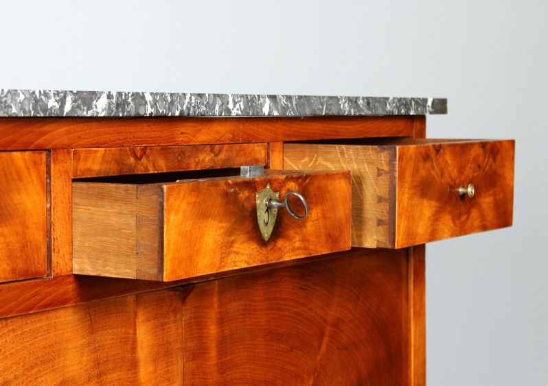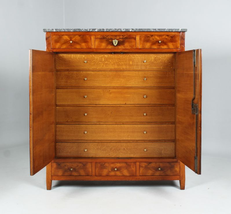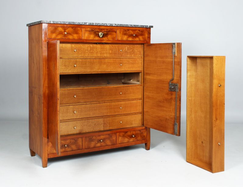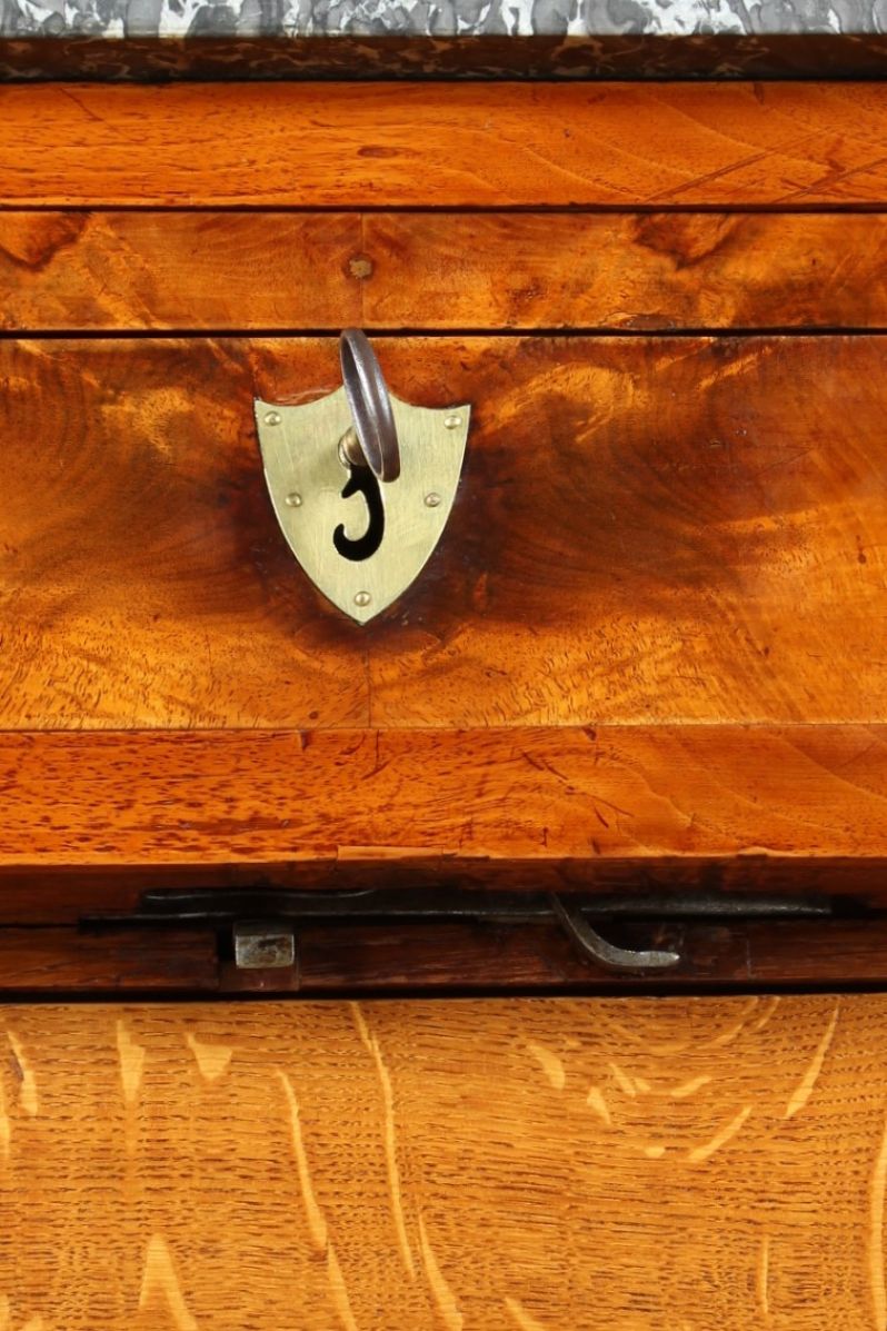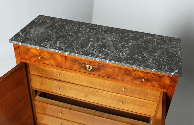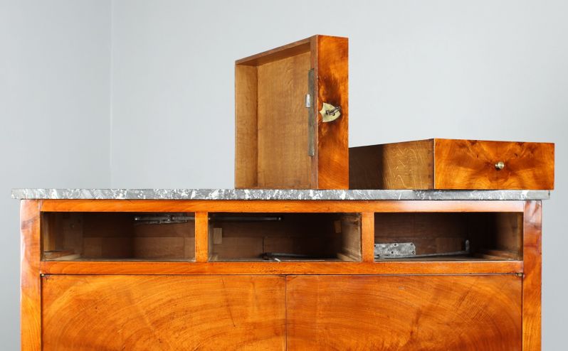 Le meuble se termine en haut par une plaque de marbre posée librement.