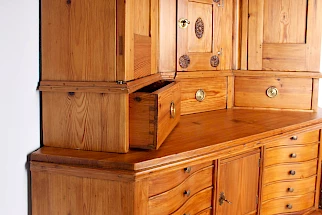 Restauré prêt à l'emploi. Bois résineux huilé, tous les tiroirs et portes fonctionnent parfaitement.