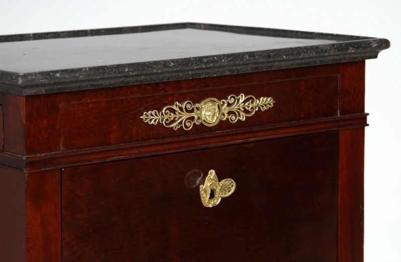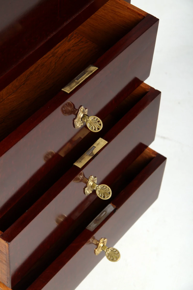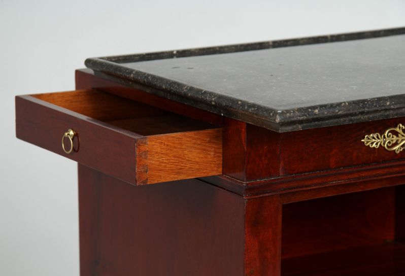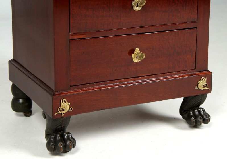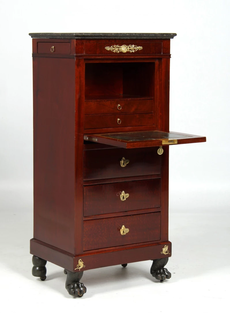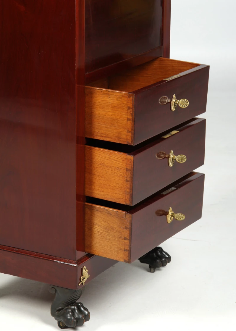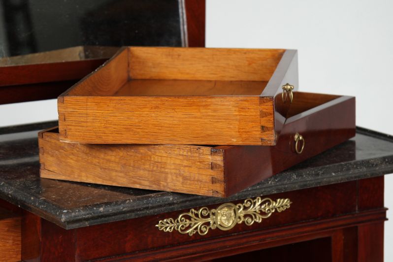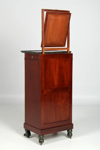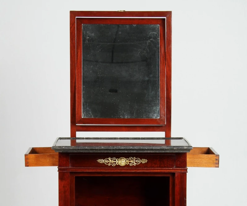 Petit meuble de bureau et de coiffure, rare dans cette exécution, dans un boîtier soigneusement travaillé en acajou foncé.
