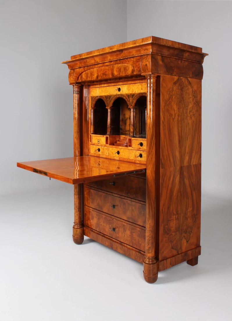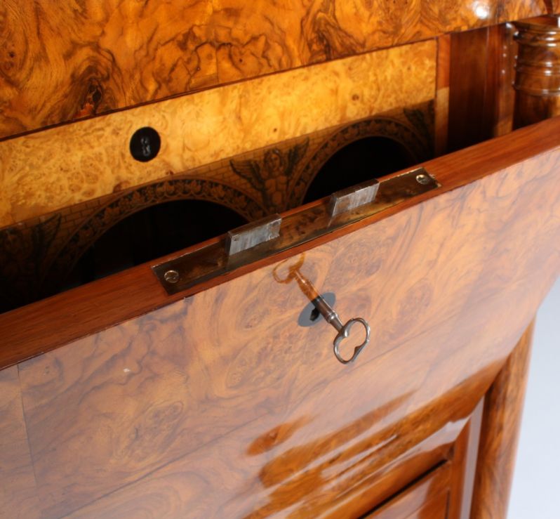 Un secrétaire Biedermeier de rêve avec des veines très bien posées et un intérieur spectaculaire.